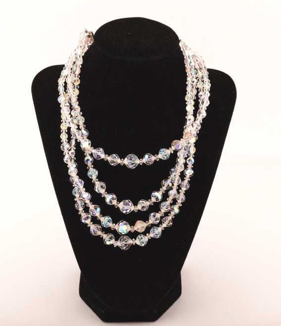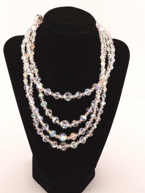 4 vintage facated crystal necklaces in different colors Est:$50-100
