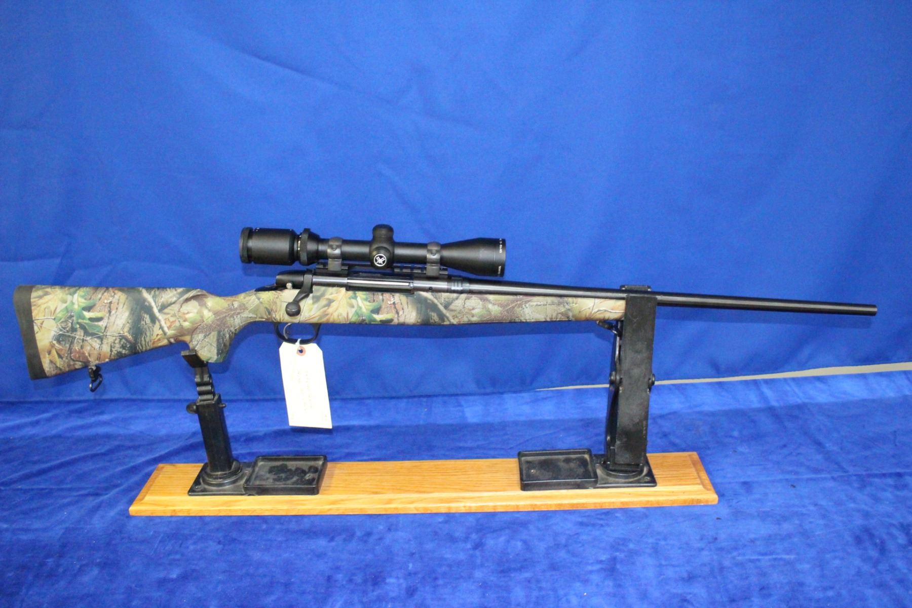 25-06 cal; Bolt Action; 22" Barrel; Good, clean bore; w/3-9x40 Vortex Scope; Camo Synthetic Stock; Very Good Condition; S/N MM00211S