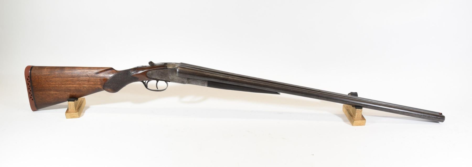 Non-restricted, multi barrel, 12 ga. 2 3/4", 30" full choke barrels, SN 305961. Wood has a chip out by upper tang and fine cracks in the wrist, also has handling marks, bluing is brown, bores are good with left bore having a bit of rust, safety does not work.