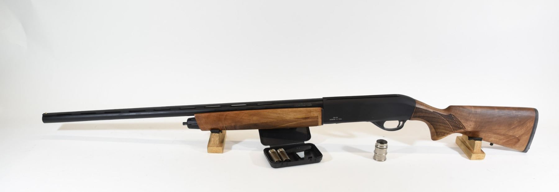 Non-restricted, semi auto, 12Ga x 3", 28" barrel with removable chokes, (F,M,IC), SN 7003. New in box.