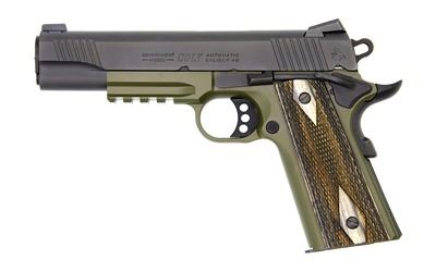 Colt's Manufacturing, Series 80, 1911, Semi-automatic Pistol, Full Size, 45ACP, 5" Barrel, Steel OD Green Frame, Black Slide, Wood Grips, Fixed Sights, 8Rd, 2 Magazines