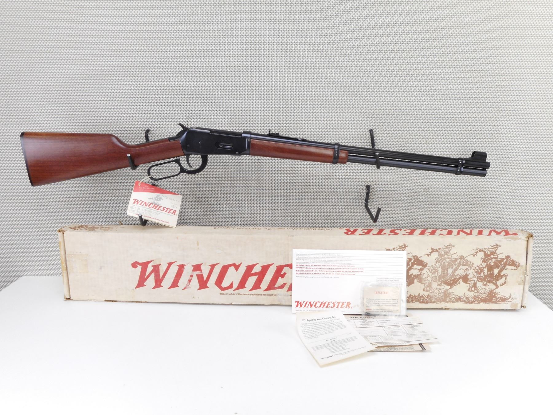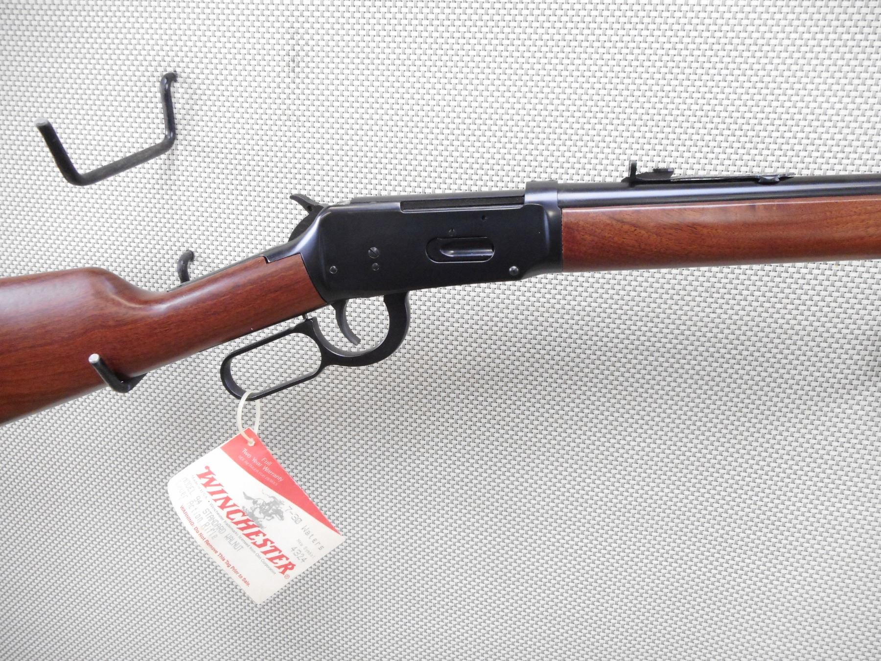 WINCHESTER , MODEL: 94 AE , CALIBER: 7-30 WATERS , COMES WITH BOX, MANUAL. BORE IS EXCELLENT, APPEARS AS NEW, MAY HAVE BEEN TEST FIRED. HOODED FRONT SIGHT AND ADJUSTABLE REAR SIGHT. TWO PIECE HARDWOOD STOCK WITH PLASTIC BUTT PLATE. SHOWS VIRTUALLY NO HANDLING MARKS. ACTION: LEVER ACTION RIFLE , BARREL LENGTH: 20" , SERIAL # 5572704 , CONDITION: AS NEW IN BOX , CLASS: CANADIAN NON RESTRICTED CLASS