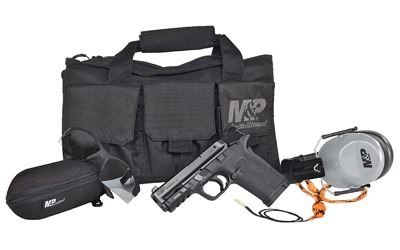 Smith & Wesson, M& P380 Shield 380 EZ, Semi-automatic, Compact Frame, 380 ACP, 3.675" Barrel, Polymer Frame, Black Finish, 8Rd, Range Kit Includes Soft Case, Hearing Protection, Eye Protection, and Pull Through Cleaner, Grip & Thumb Safety, 3 Dot Sights