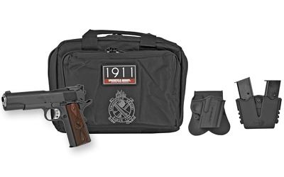 Springfield, Range Officer, Full Size, 1911, 45ACP, 5" Match Grade Barrel, Steel Frame, Parkerized Finish, Cocobolo Grips, Adjustable Sights, 7Rd,Instant Gear Up Includes 5 Magazines, Range Bag, Hard Case, Holster and Magazine Pouch