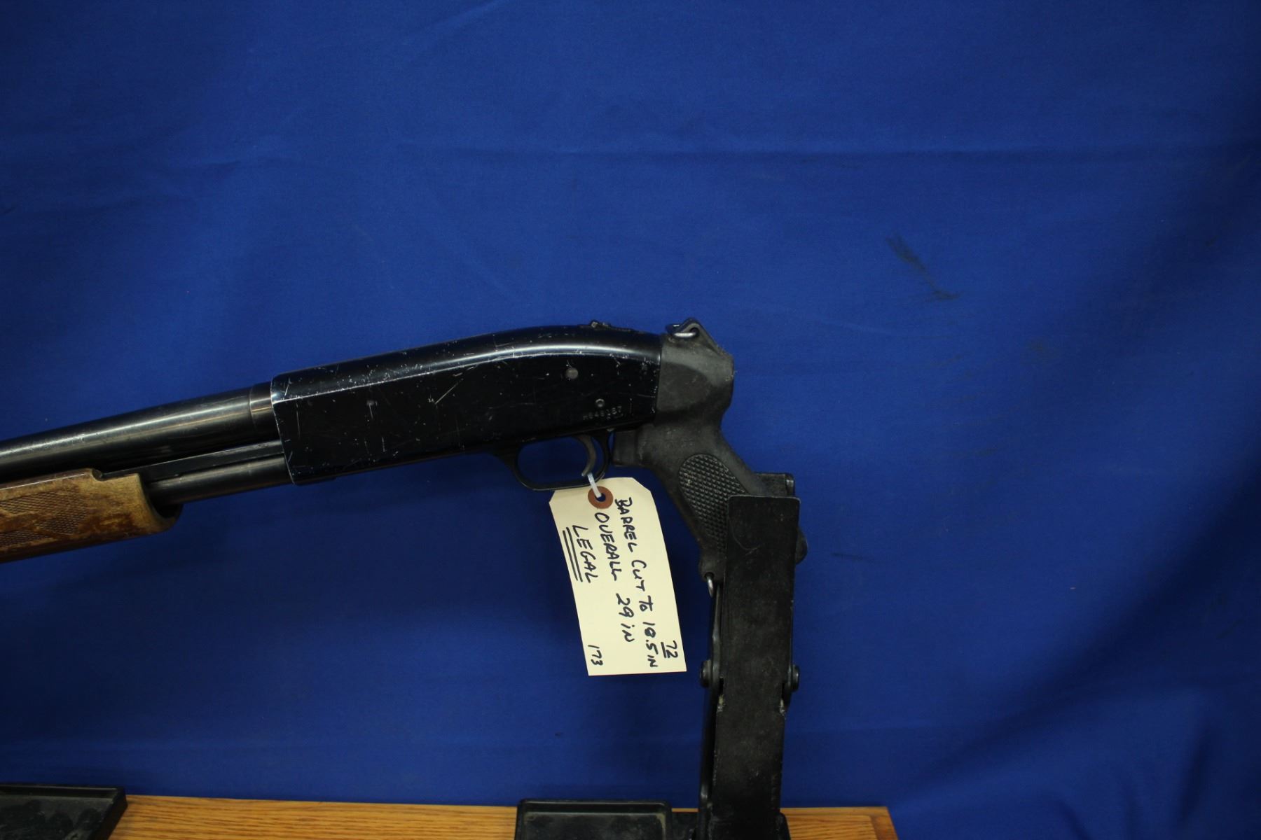 Legal; 12 ga.; 2 3/4 - 3"; Barrel cut to 18 1/2"; Overall Length - 29"; S/N H548157