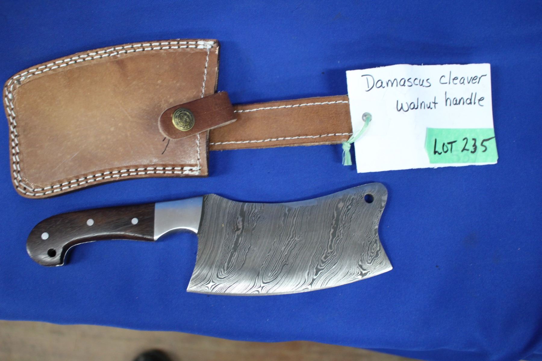 Lot 235 Damascus Clever (5 ½" Blade) with Walnut Handle; Sheath