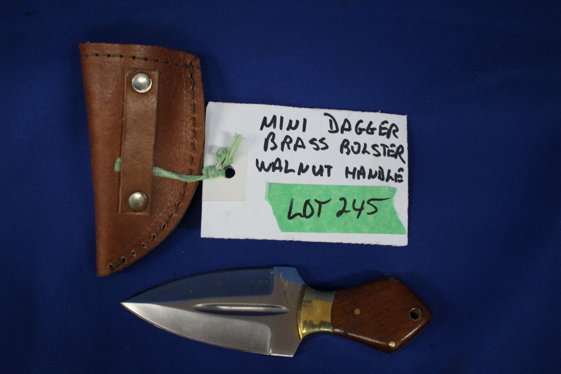 Lot 245 Mini Dagger, Stainless, 3" Blade, Walnut Handle, Sheath