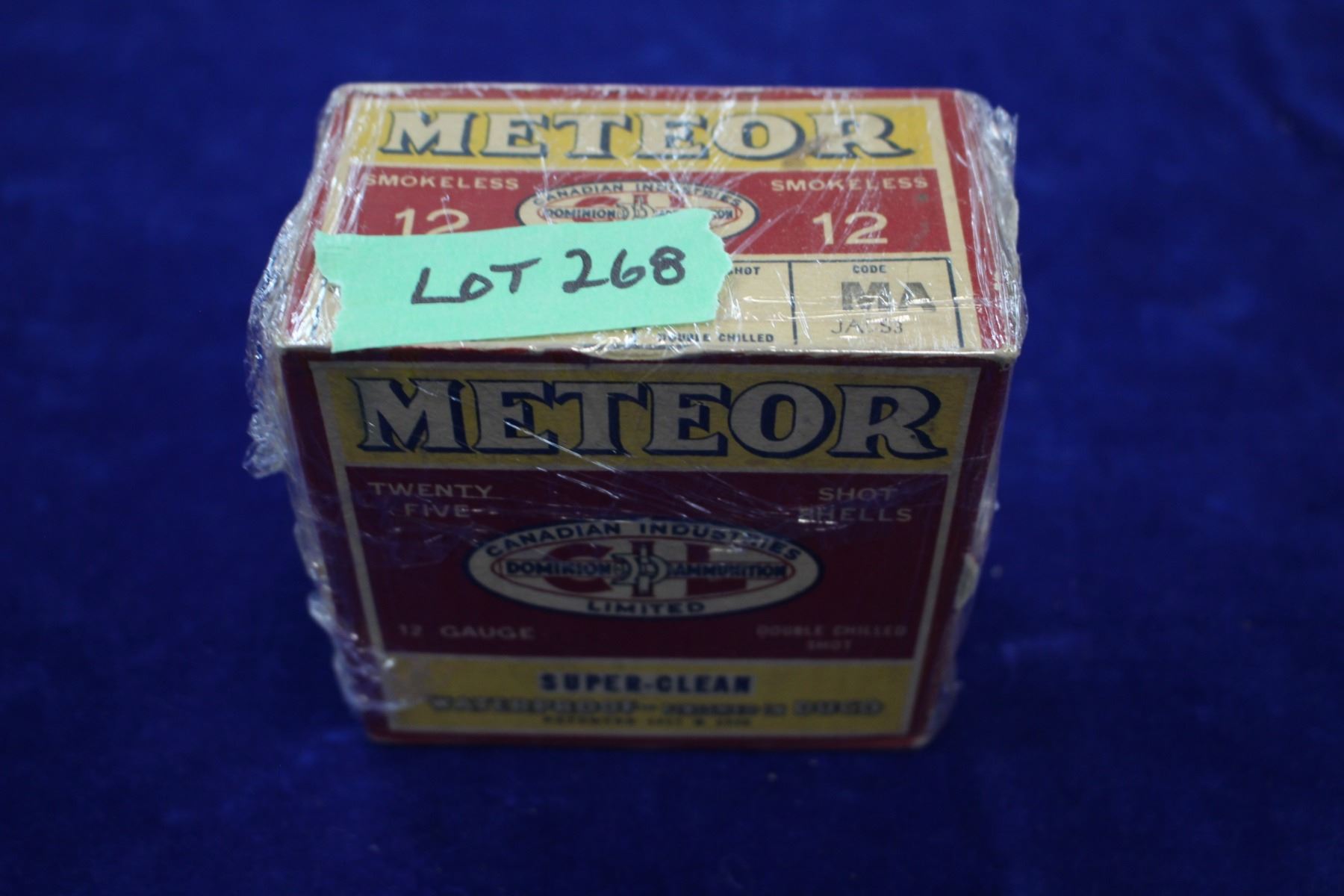 Lot 268 Full Box of 25 Meteor Smokeless, 12 ga., Double Chilled Shot, Waterproof, Finished in Duco