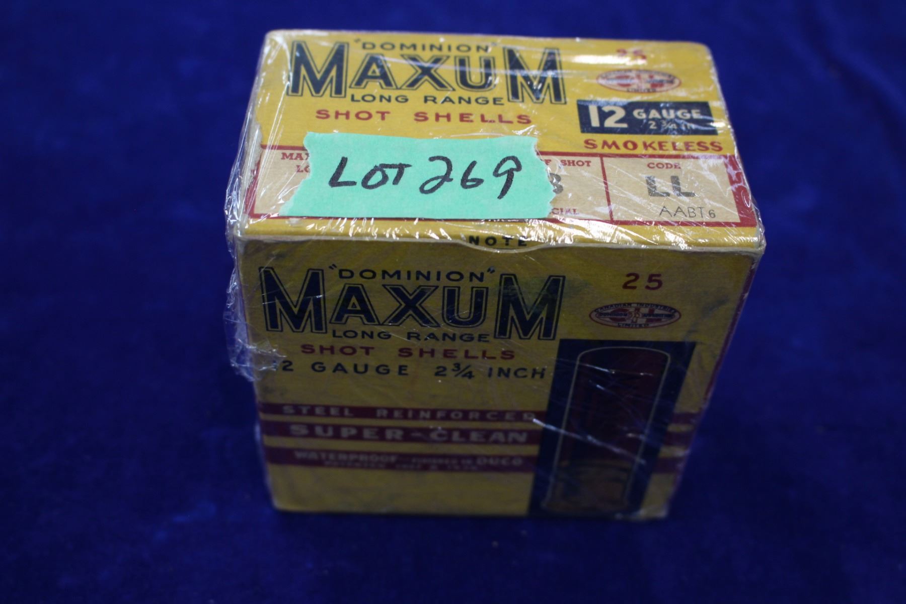Lot 269 Full Box of Dominion Maxum Long Range, 12 ga., 2 3/4", #3 Shot, Special Steel Reinforced, Waterproof
