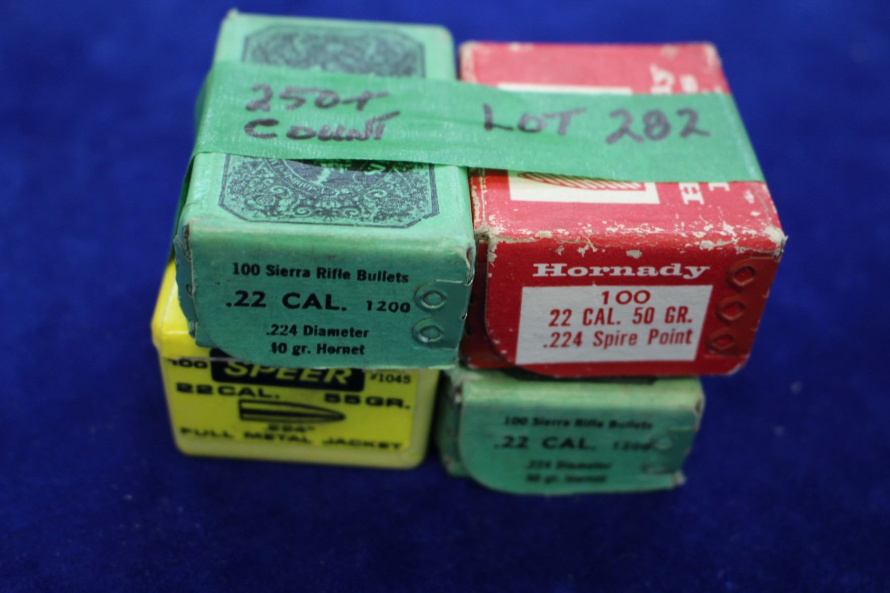 Lot 282 Bullets - 250 count, 22 cal; 40, 50, & 55 gr