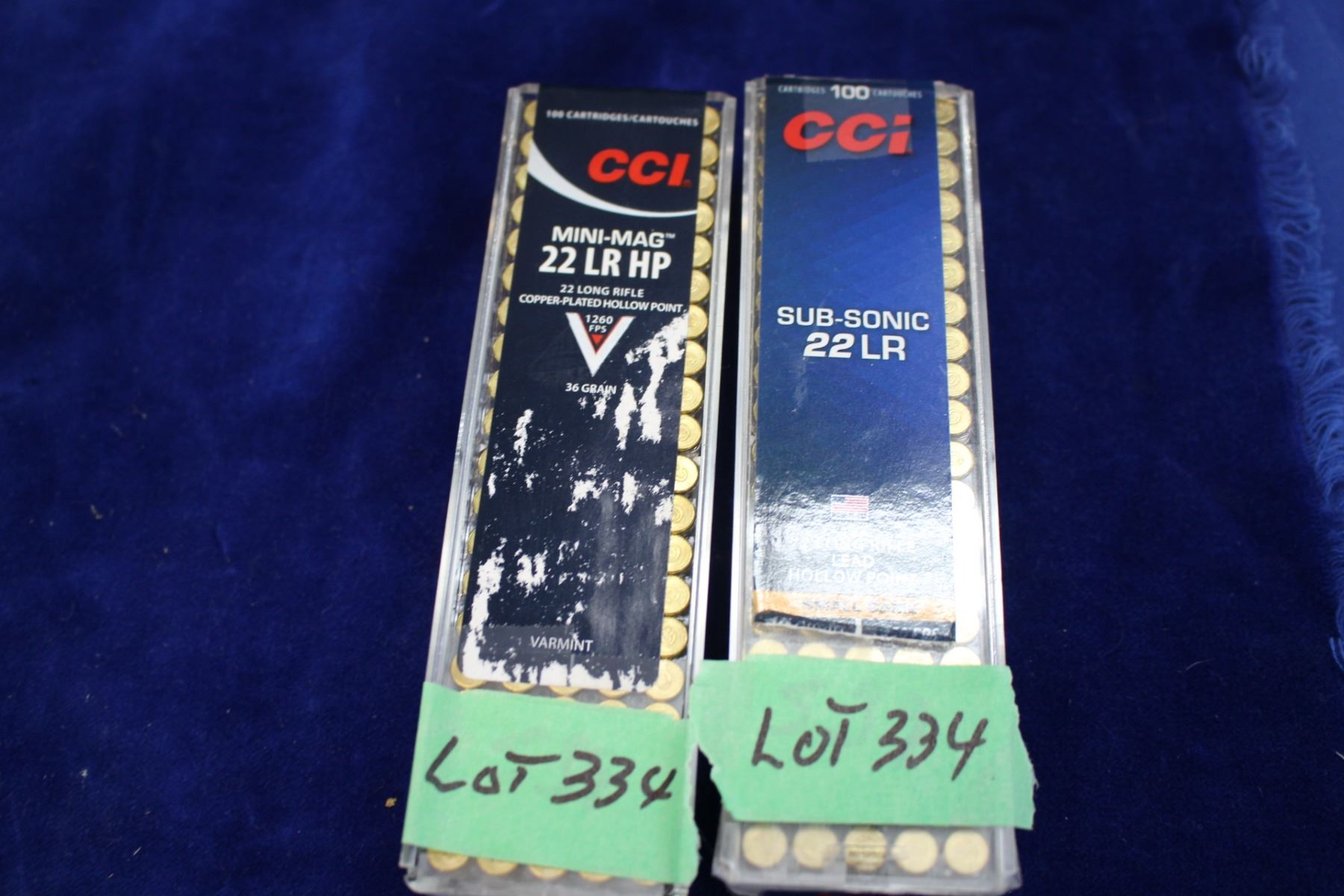 Lot 334 100 rnds of 22 LR, HP and 100 rnds of 22 LR Sub Sonic