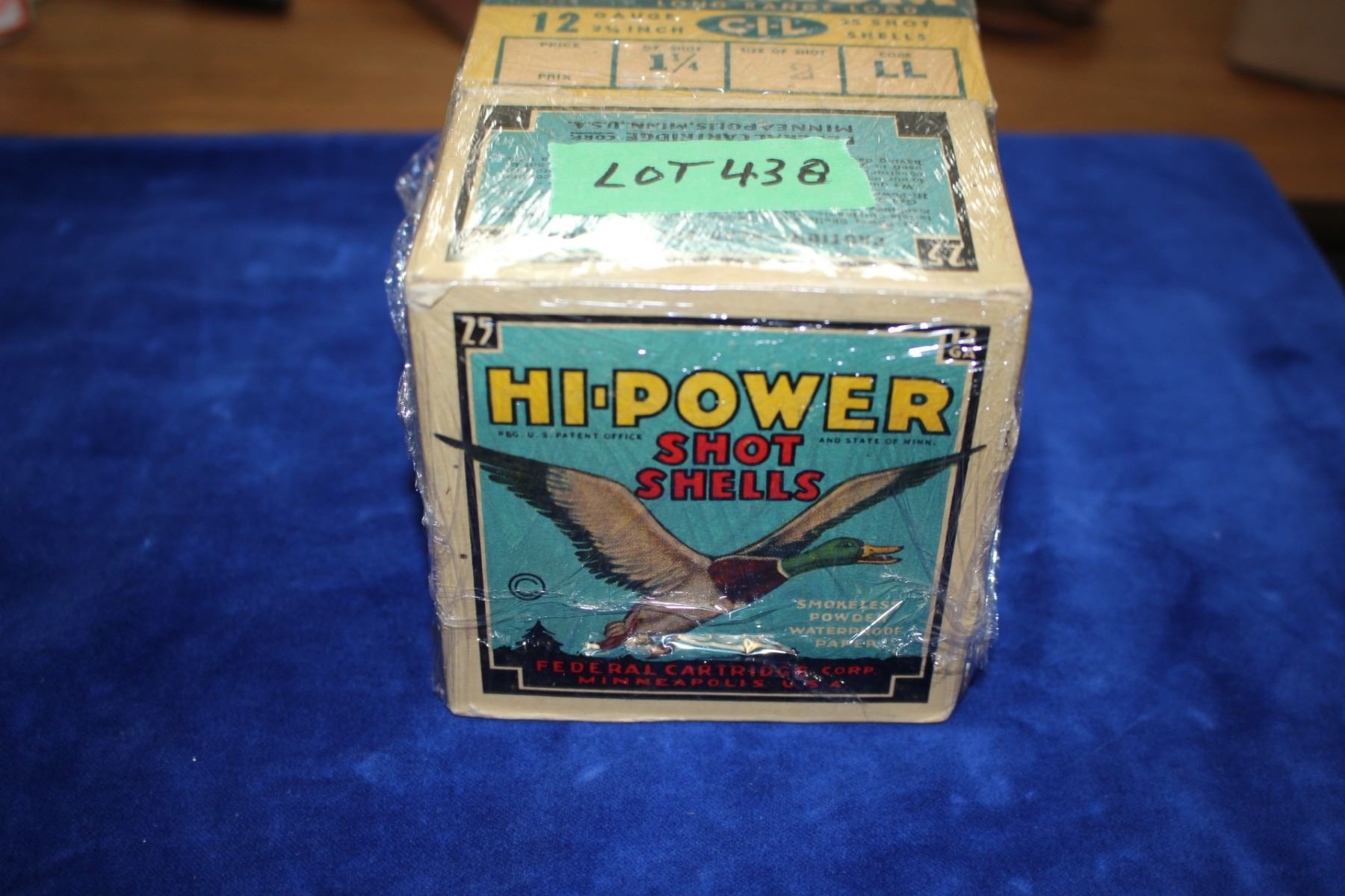 Lot 438 Collector Box with 25 Hi Power Shot Shells, 12 ga., & a Collector Box with 25 Maxum Long Range Load,