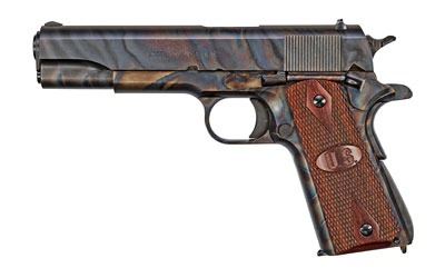 Auto Ordnance, Case Hardened, Semi-automatic, 1911, 45 ACP, 5" Barrel, Steel Frame, Case Hardened Finish w/Clear Protective Coat, Wood Grips w/US Logo, 7Rd, 1 Mag, Thumb Safety, Blade Front/Adjustable Rear Sight