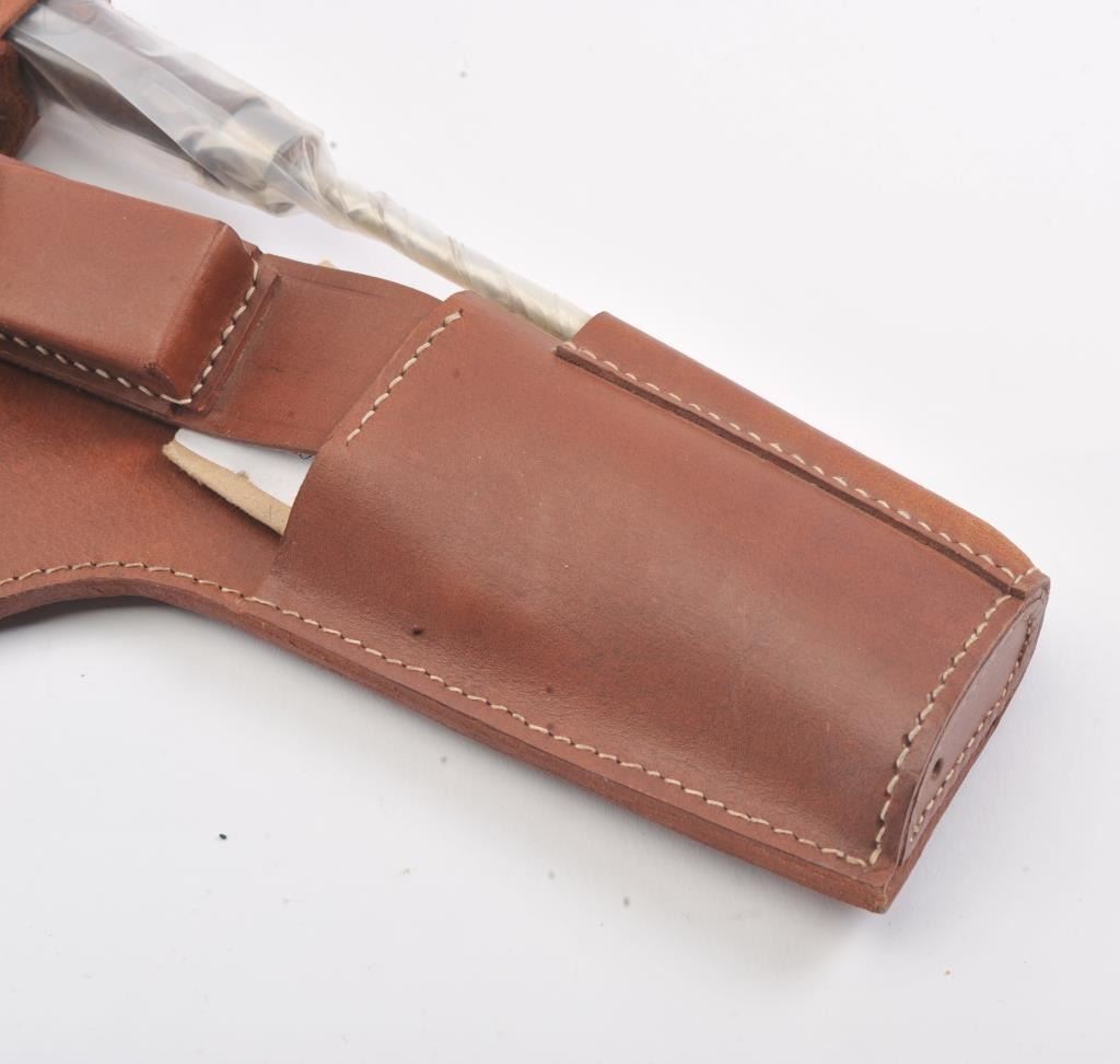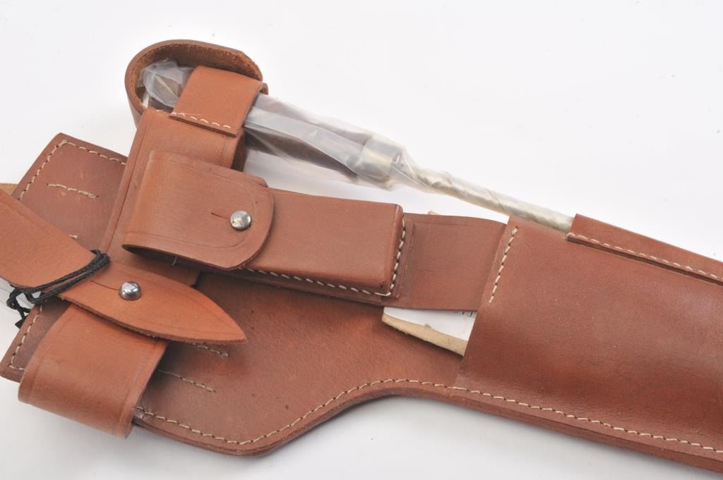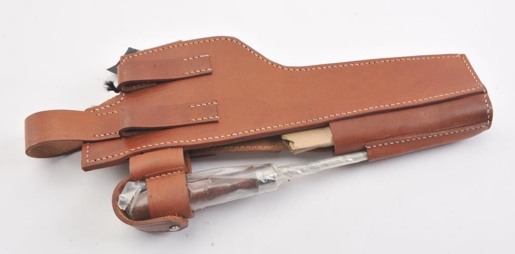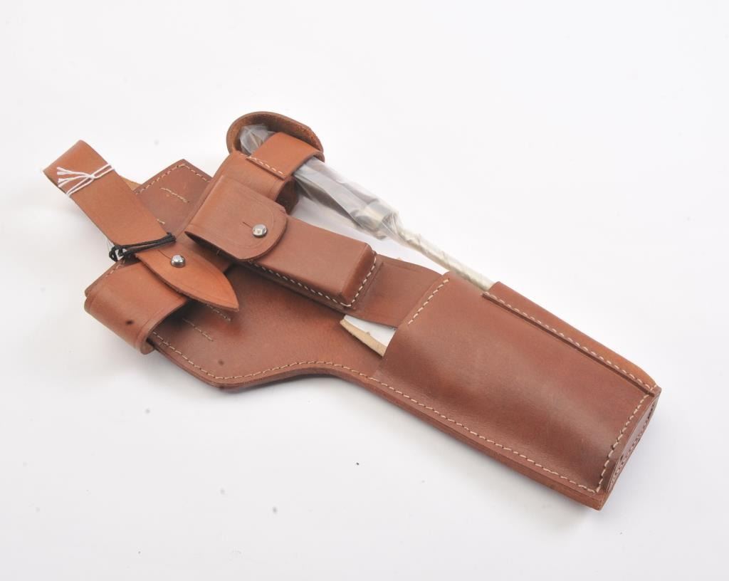 Modern leather holster for a Mauser C96 pistol. The holster is as new with a cleaning rod. Est.: $25-$50.