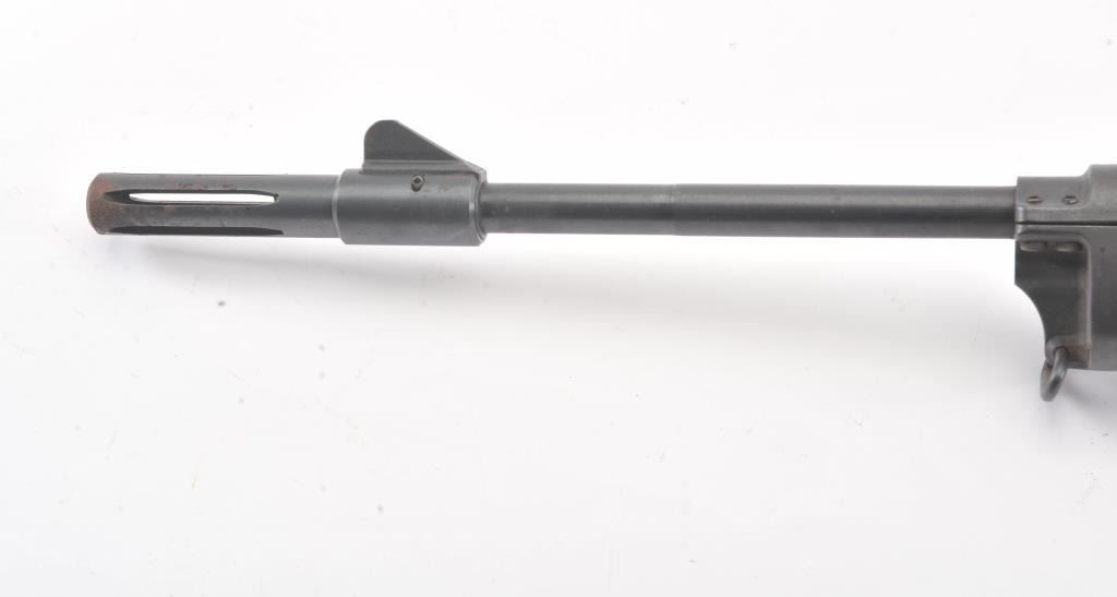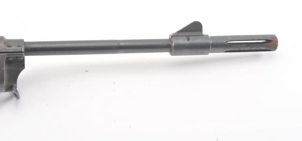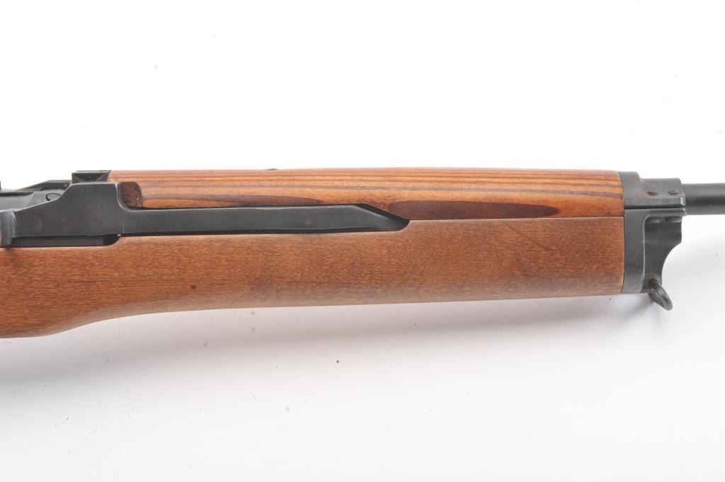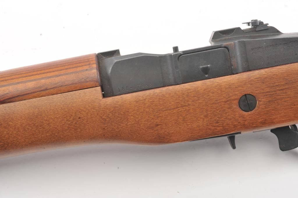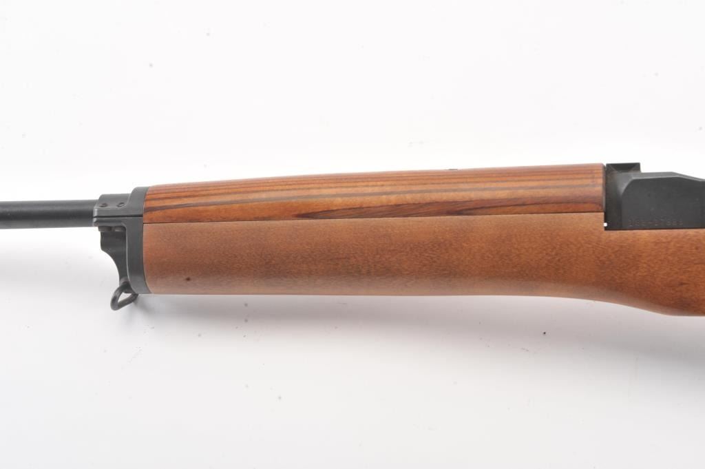 Ruger Ranch Rifle model semi-automatic rifle, .223 caliber, 21” barrel including muzzle break, blued finish, wood stock, no magazine, S/N 188-17888; overall good condition with majority of finish remaining on metal, somescattered minor surface rust from storage, un-cleaned bore, crisp action, sharp markings; wood stock shows old loss of finish at base of butt stock apparently from contact with moisture. (Modern).Est.: $350-$700.