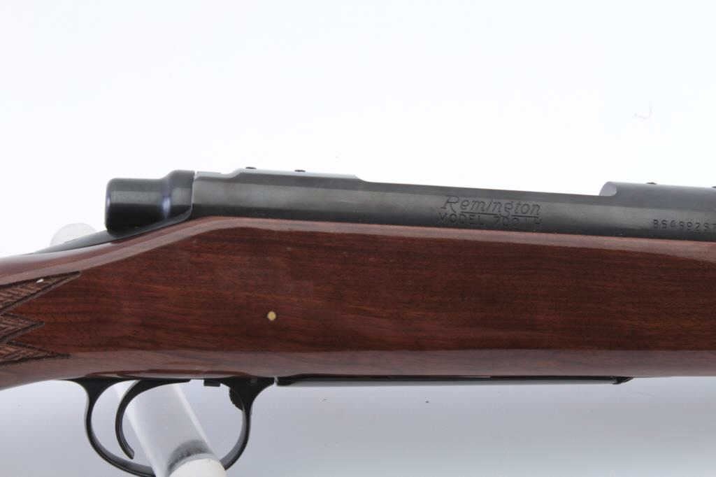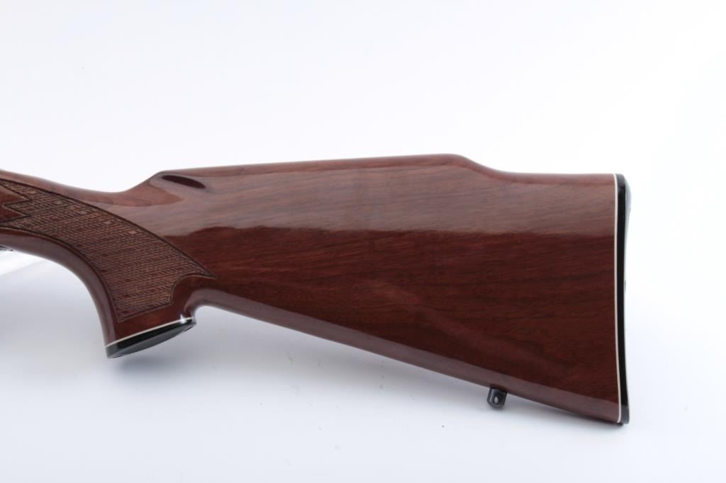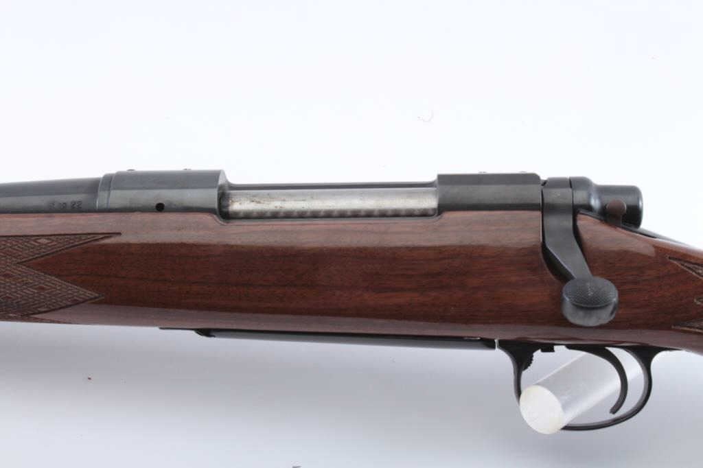 Remington Model 700 Left Handed bolt action rifle, .270 caliber, Serial #8646967. The rifle is in excellent condition with a 22” barrel. The metal surfaces retain nearly all of the blue finish with a jeweled bolt. The checkered wood stock is in very good condition. According to the consignor, he has fired less than a box of ammo through the rifle in 40= years of ownership. Est.: $350-$700. (Modern).
