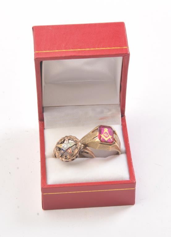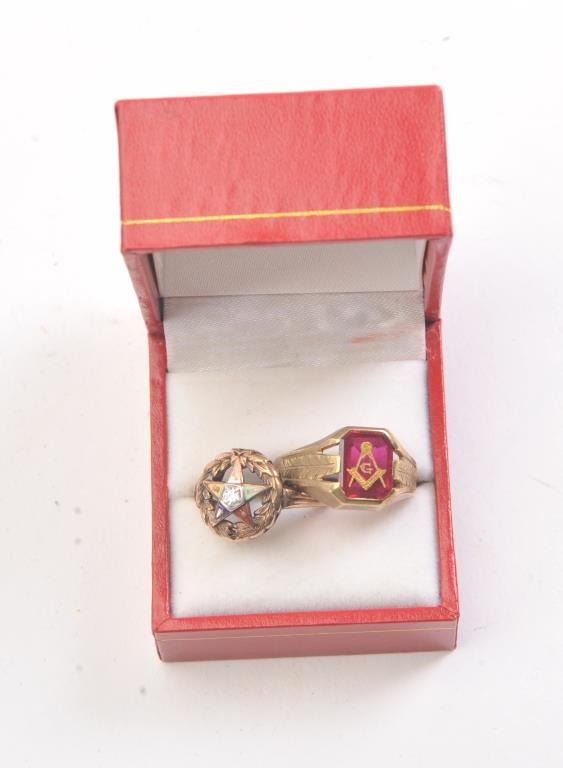 Man & Woman's Masonic Gold Rings from late 1920's from an estate of married couple. Est:$350-500