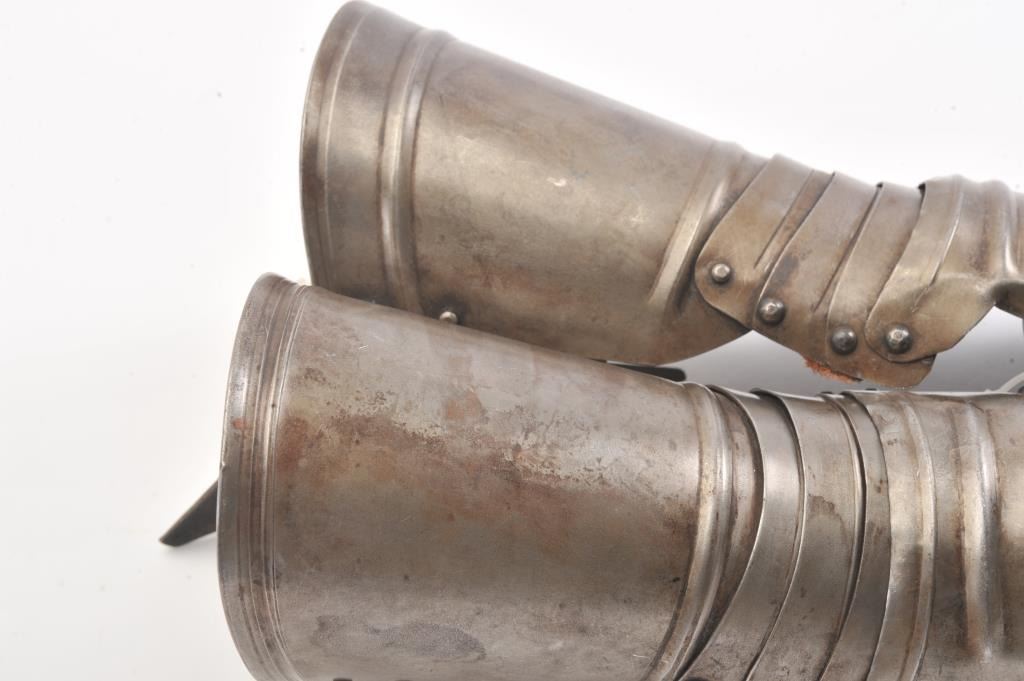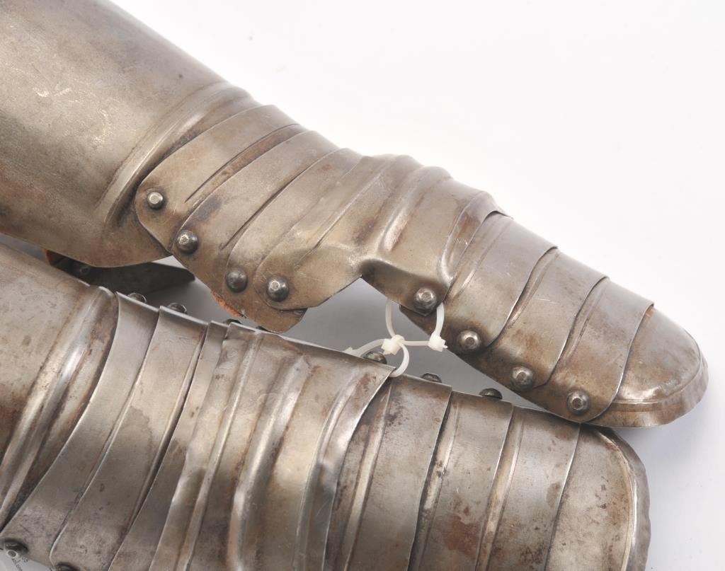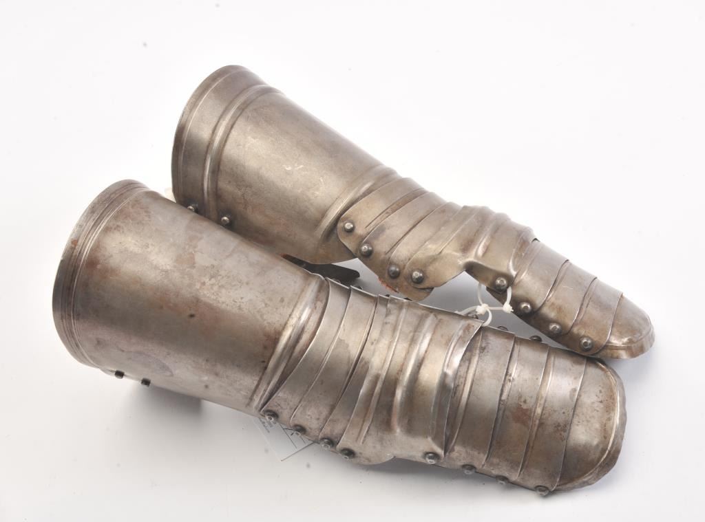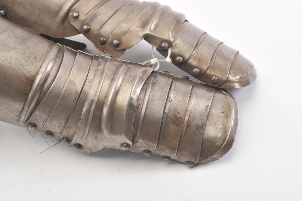 Antique mitten type European gauntlets with thumbs (Detached). Well-articulated and correctly made by armorer probably 19th century. Est.: $300-$600