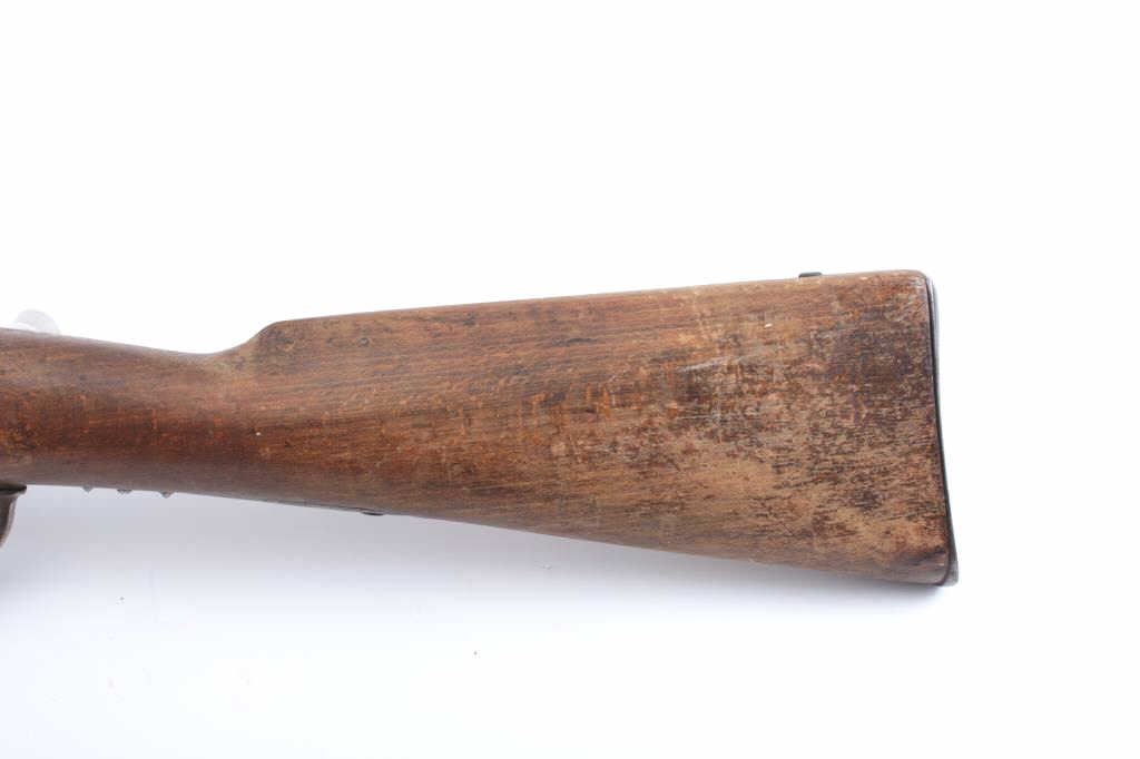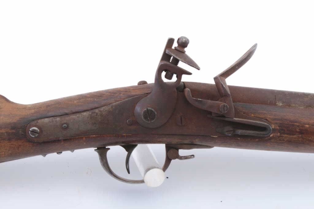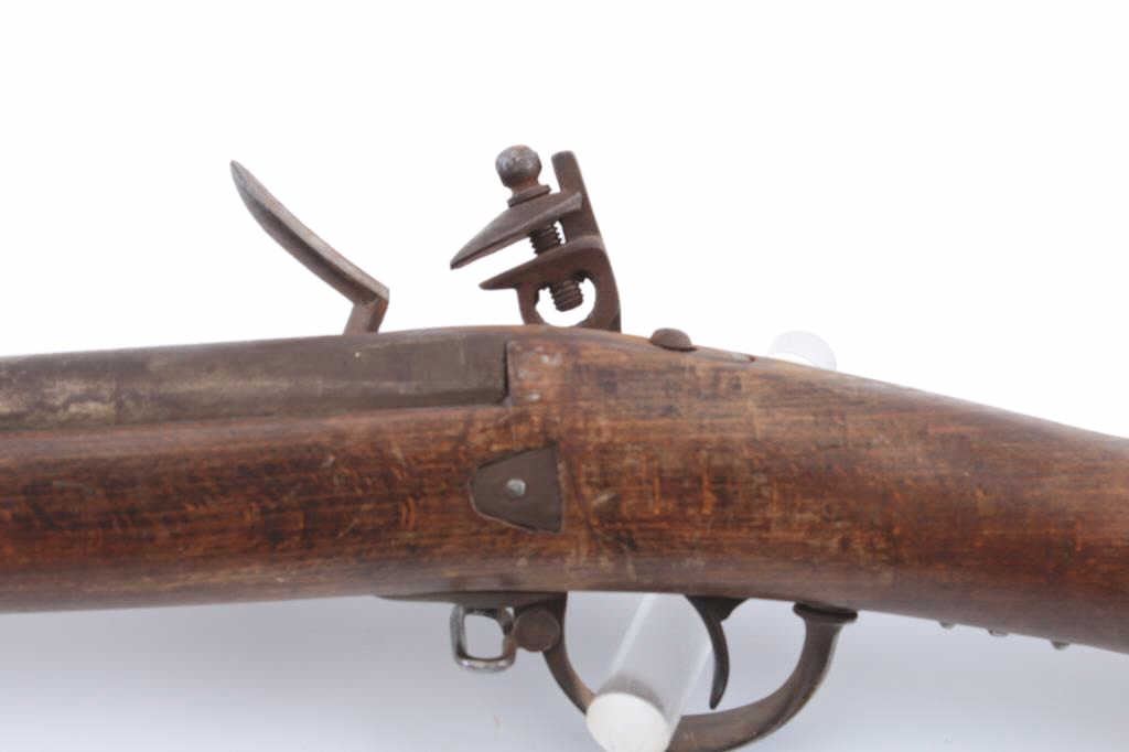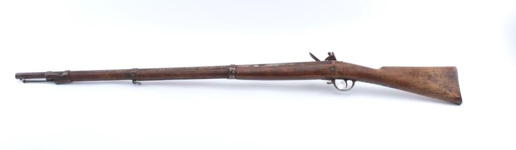 Large bore Belgium trade gun from late 19th to early 20th century found in Alaska by our consignor and used by native people. Measures 56" overall with a 39" barrel of .70+ caliber. Minor rust and erosion from exposure to the elements and stock shows wear and use. Lock working. Period ramrod. (Antique) Est.: $350-$700