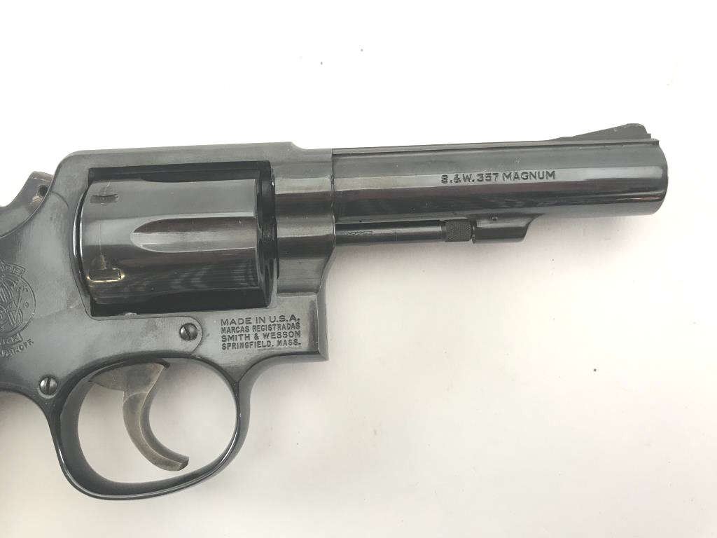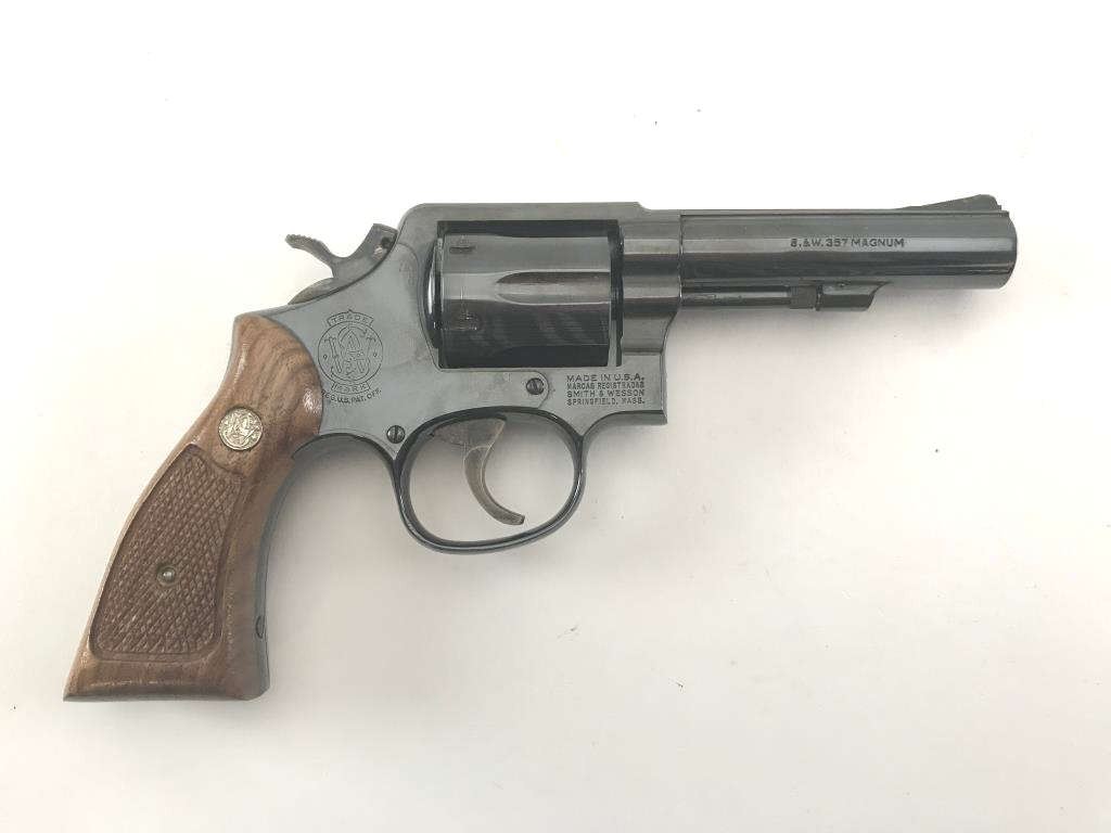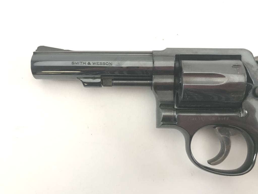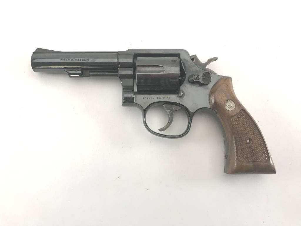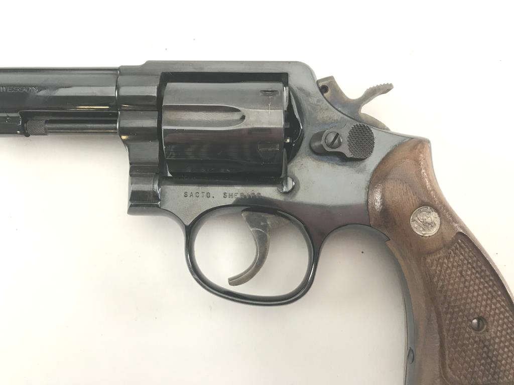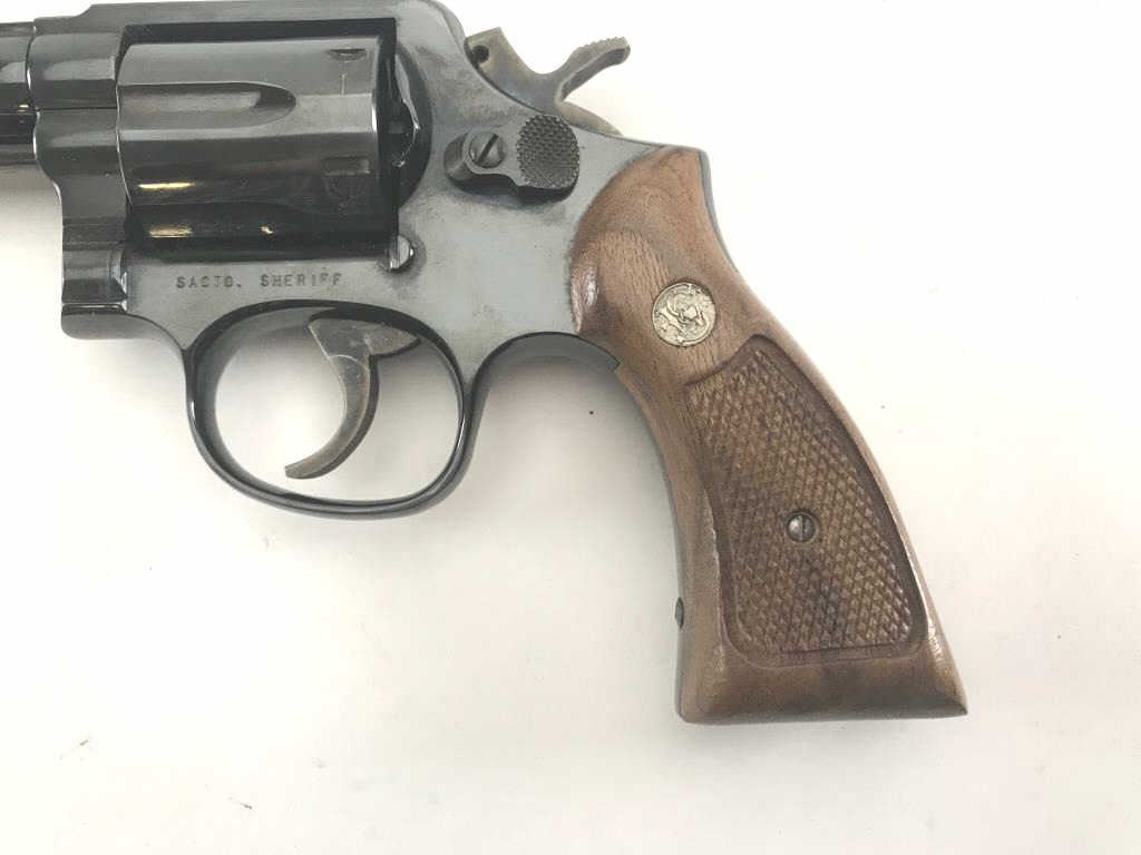 Smith & Wesson Model 13-3 DA revolver, 9D67897, .357 Magnum caliber, 4” heavy barrel, blued finish, checkered medallion wood grips, left side of frame stamped “SACTO. SHERIFF”. The revolver is in verygood to fine condition displaying the majority of its original finish, fine bore, crisp action, sharp markings and fine grips. (Modern/PPT). Est.: $500-$1,000.