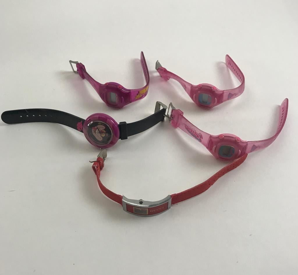 A collection of 5 fun fashion watches including on gucci ladies watch Est:$25-50