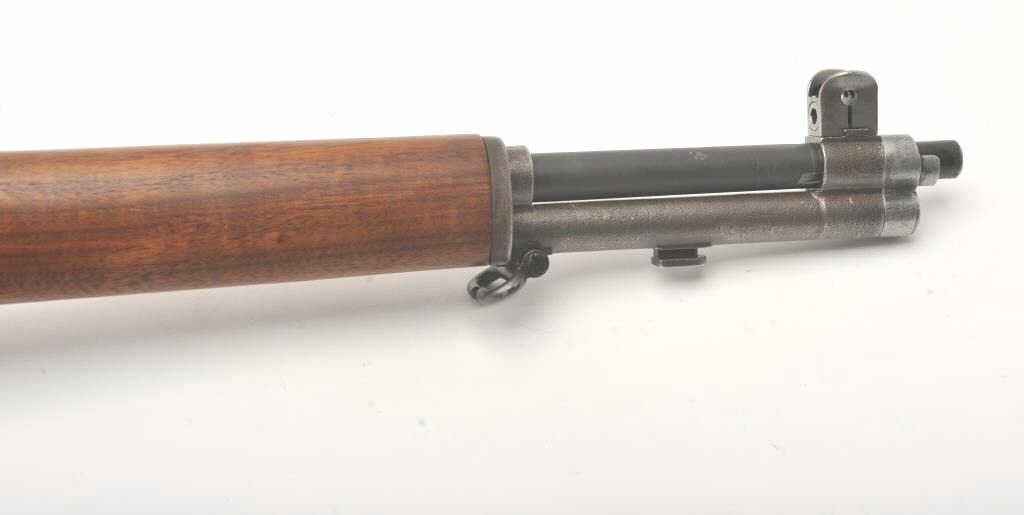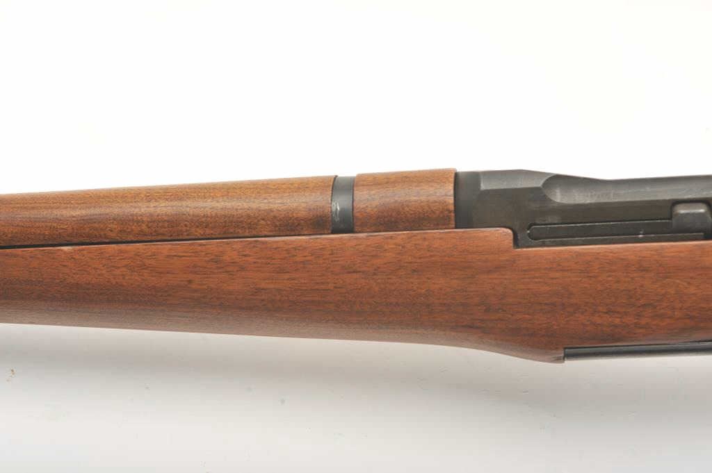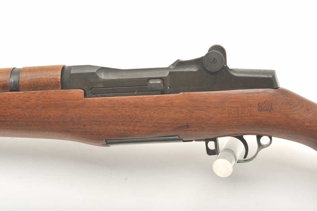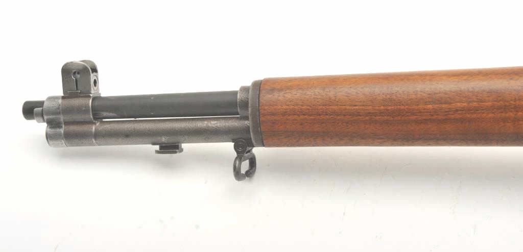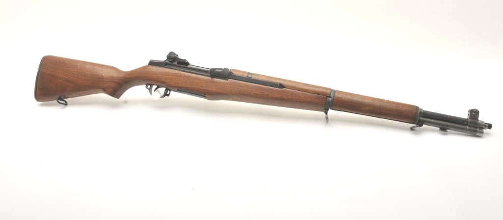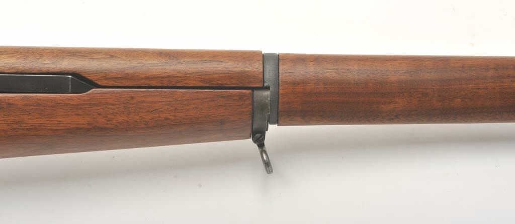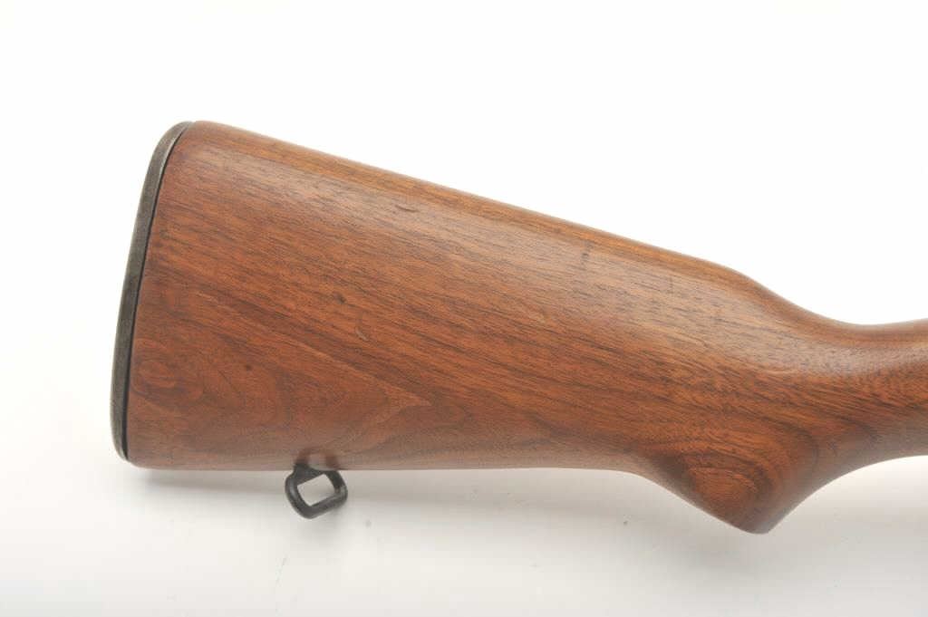 U.S. Springfield M1 Garand semi-automatic rifle, .30 caliber, 24” Winchester barrel (per consignor, TE=3.0 MW=2.0), military finish, wood stock, S/N 2449874; sharp markings, crisp action, very good + bore;consignor notes “The rifle has been restored to approximately 80% with WRA parts; the stock is correct for this time period (ca. May 1944) with WRA/GHD cartouche stock, crossed cannons and circle P proof; the stock and handguards have been completely restored”; additionally, “134” has been stamped on the left side of the stock at grip. (C&R). Est.: $1,500-$3,000.