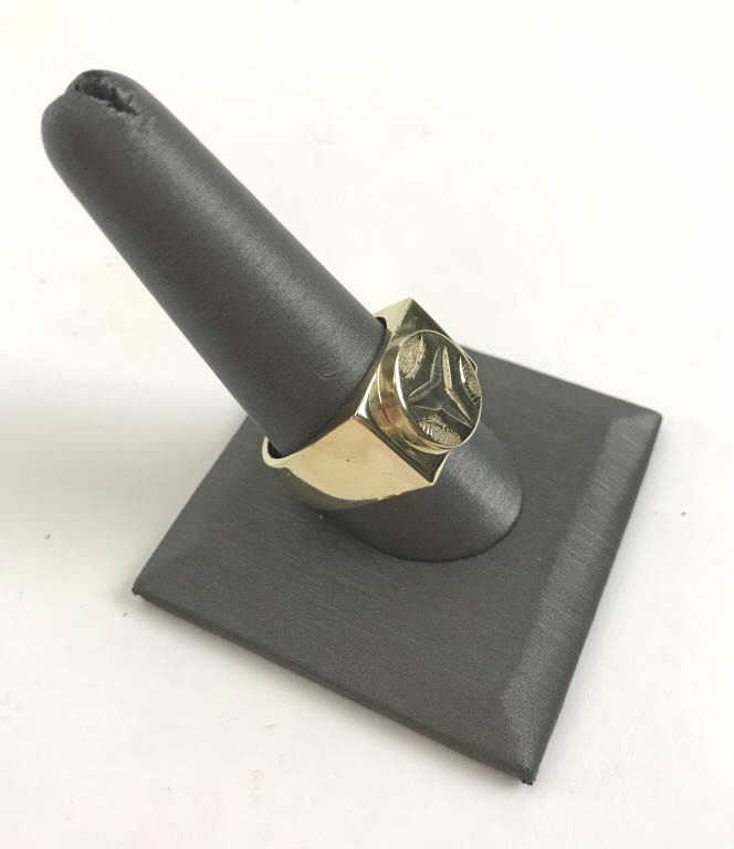 One mans Mercedes Benz logo ring in 14k yellow gold weighing 14.2 gms Est:$375-750