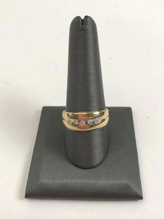 One gents diamond band containing 5 diamonds made in 14k yellow gold Est:$250-500