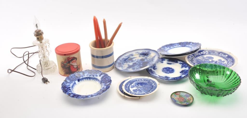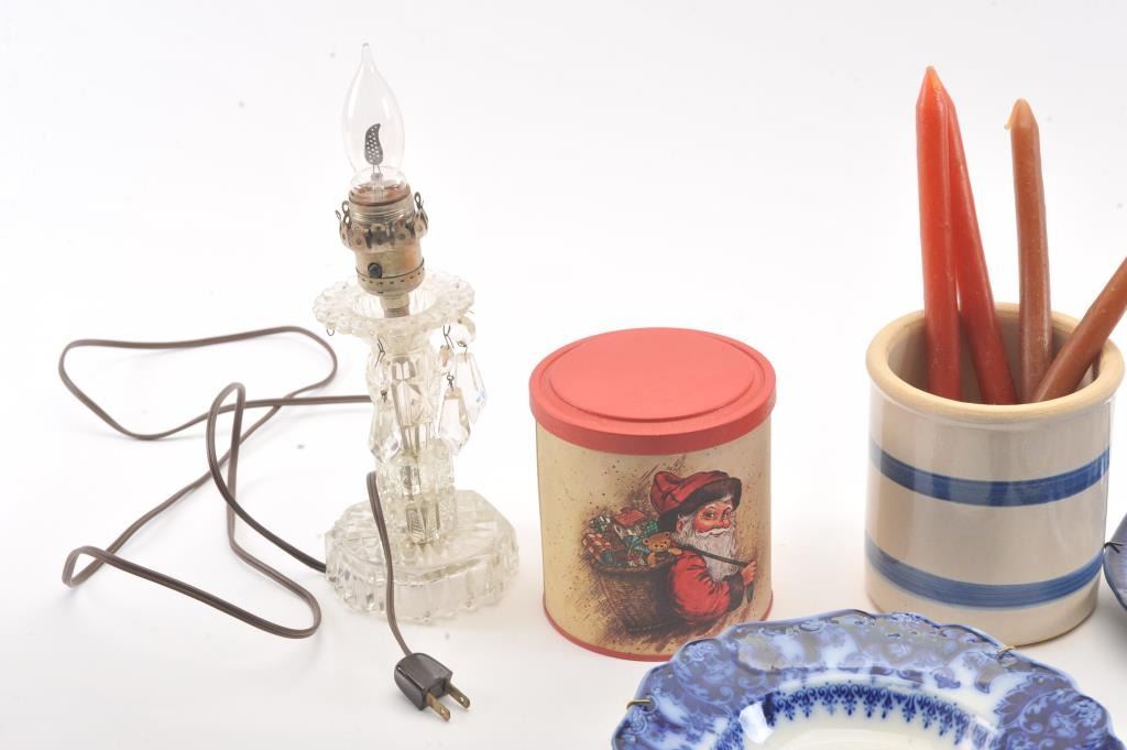 Antique lot of glass, various styles, along with a lamp. Est:$100-200