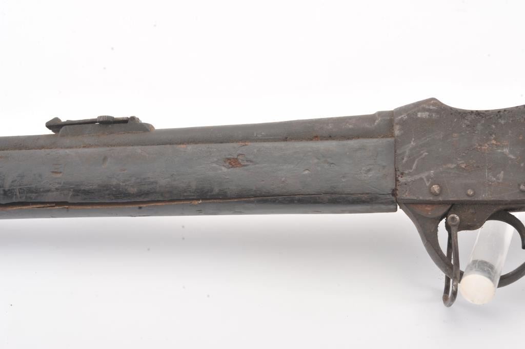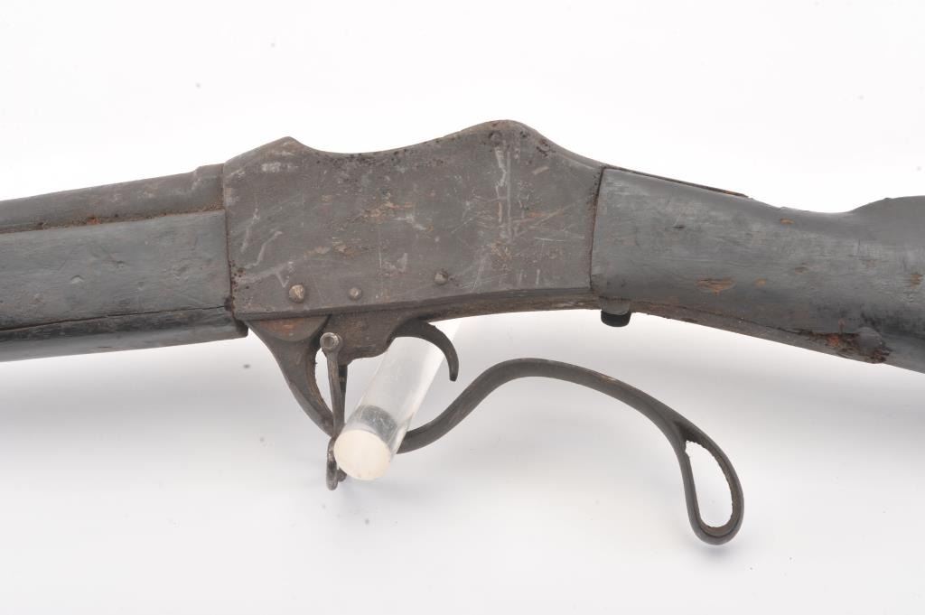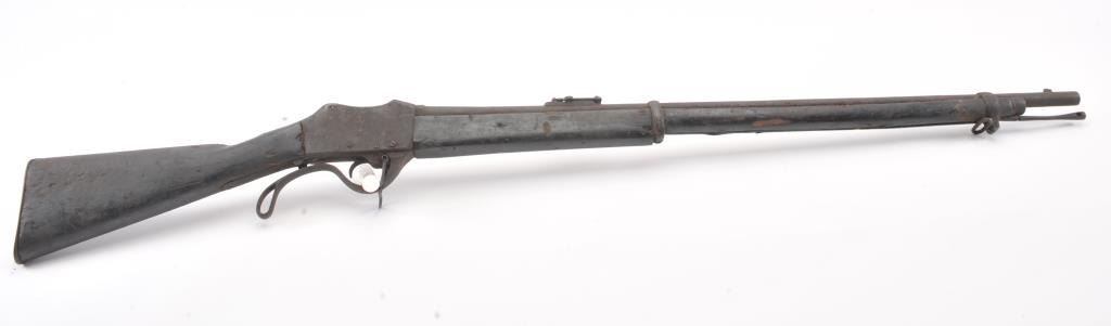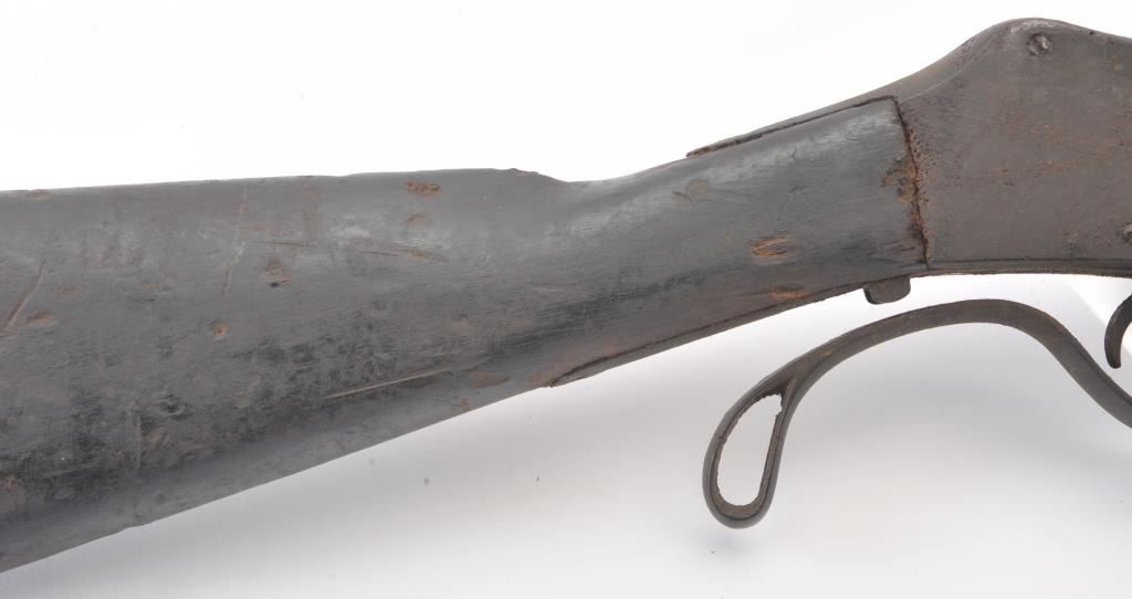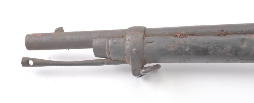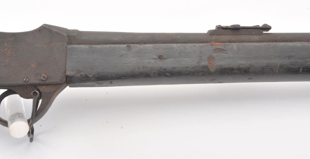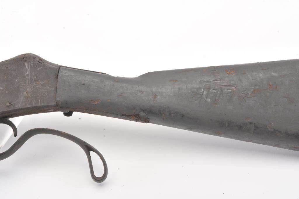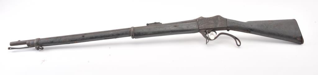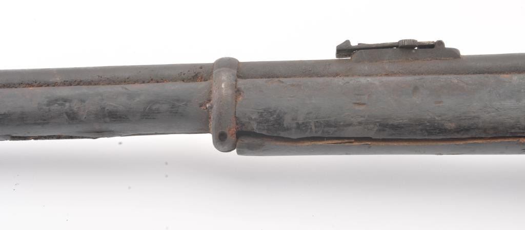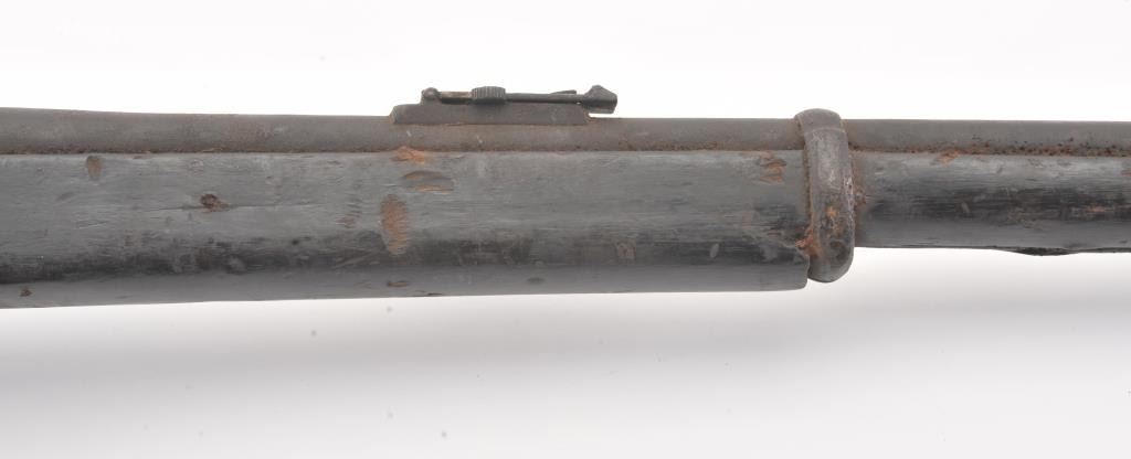Martini-Henry falling block military rifle, .577/450 cal., 33” barrel, wood stock, stored poorly for a long period of time with heavy grime on all surfaces, inside and out; a project gun. (Antique). Est.:$100-$200.