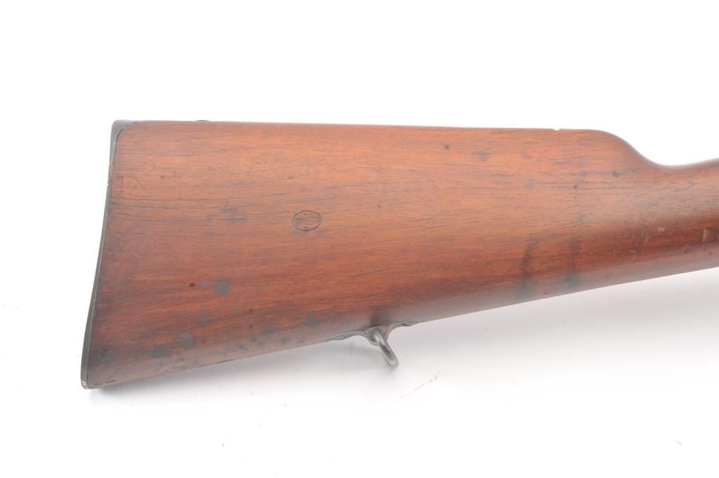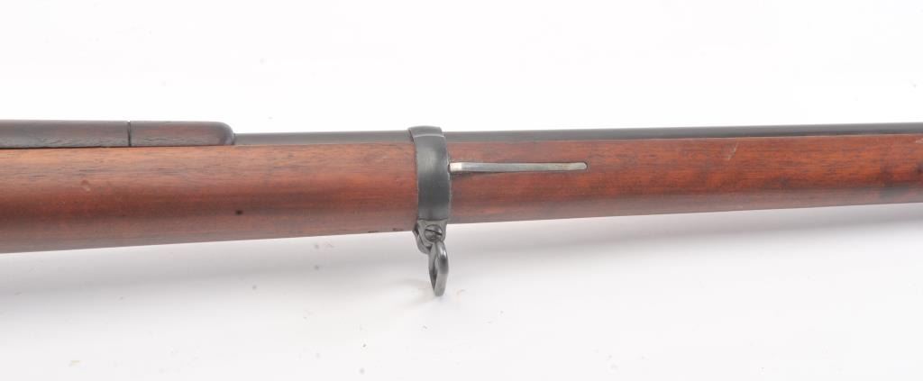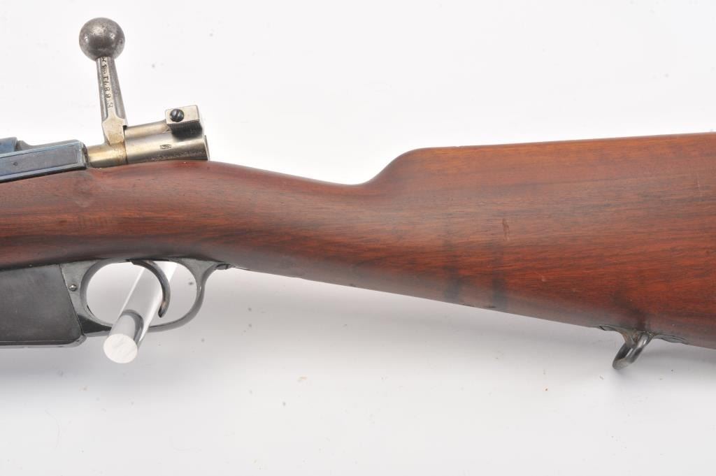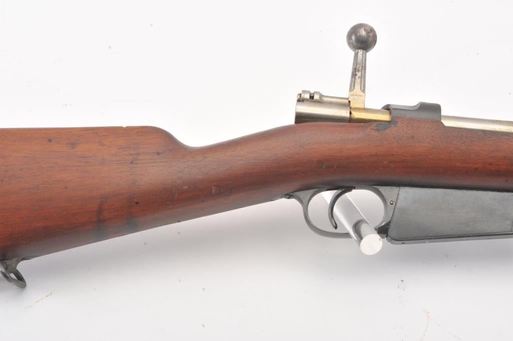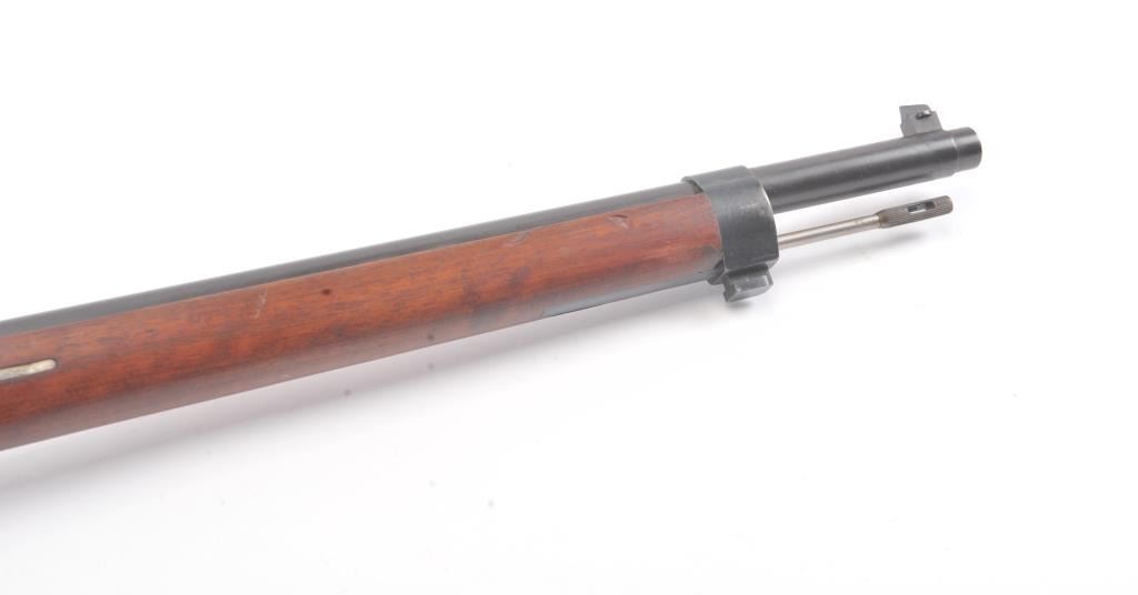 Beautiful Model 1891 Argentine Mauser rifle. All matching serial numbers, S/N E6871. This rifle is in 7.65 x 53 caliber and retains nearly all its original finish with great wood. Argentine crest is ground as is usual.Manufactured by Lowe and Pre-1899. A fine antique Mauser. (Antique) Est.: $400-$800
