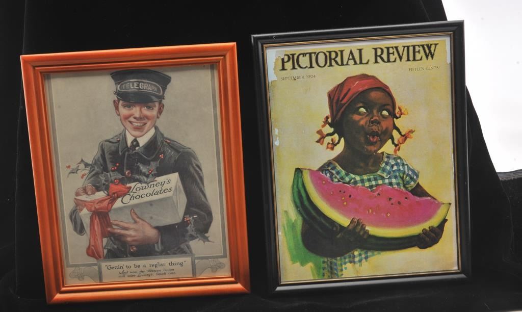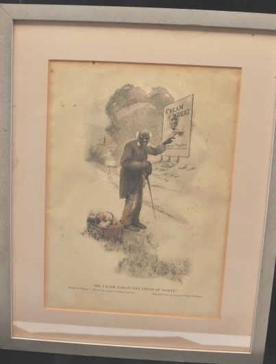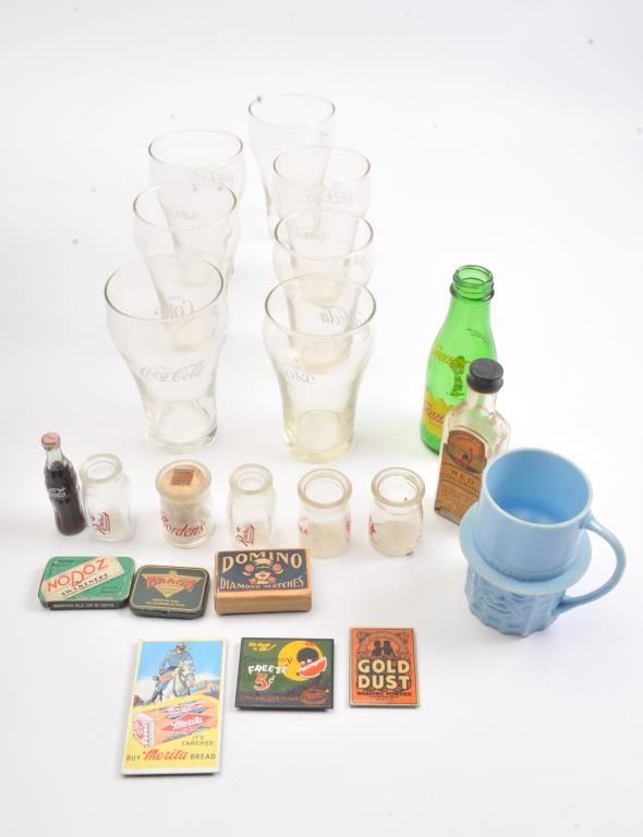 Advertising lot including a Coca Cola Clock, Coca Cola Glasses, Chief Sign, Cream of Wheat litho etc. Est:$300-400