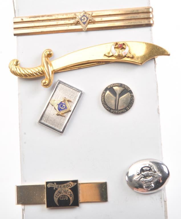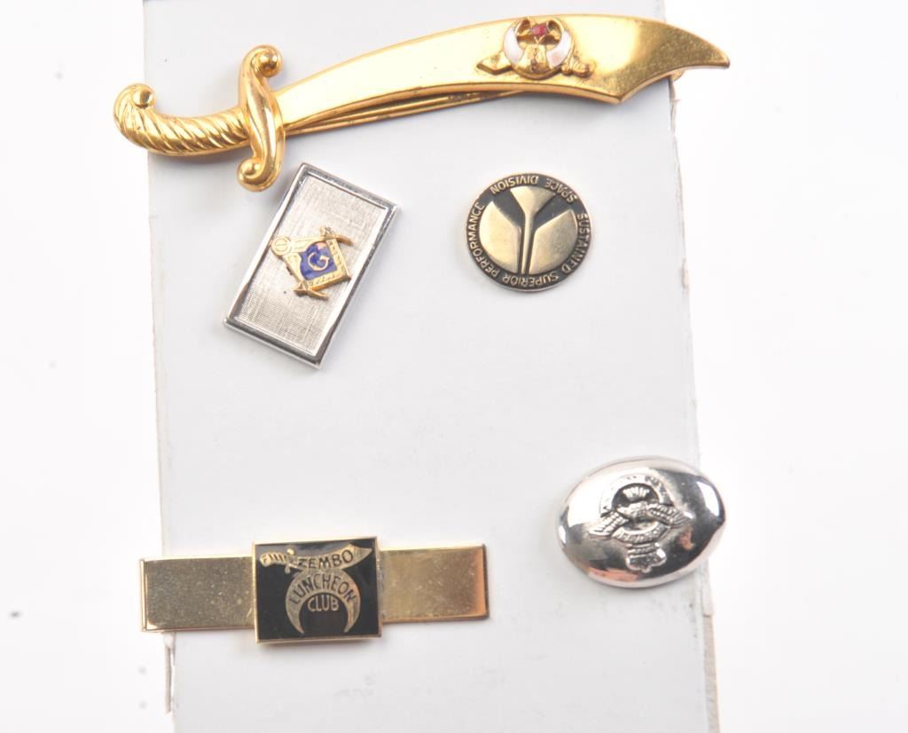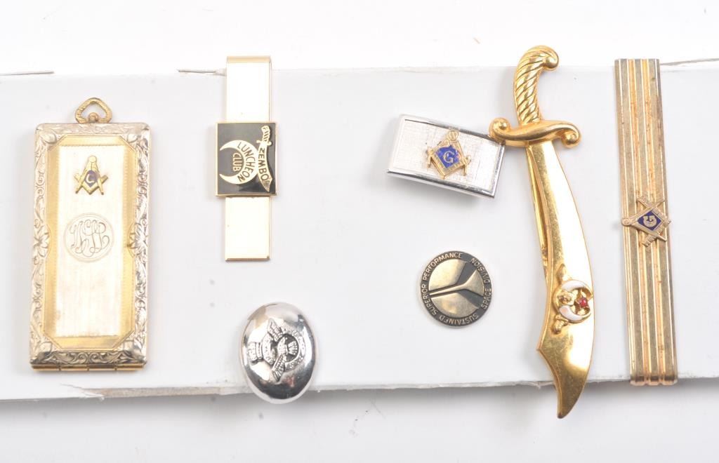 A collectible array of shriners tie clips ,pins cardholder, in all 7 pieces Est:$150-300