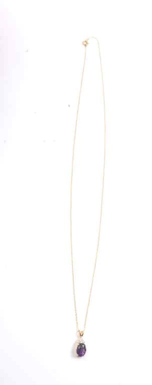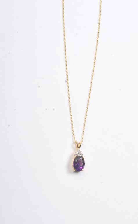 One fine oval Mozambique amethyst set in 14k yellow gold pendant with diamonds Est:$150-300