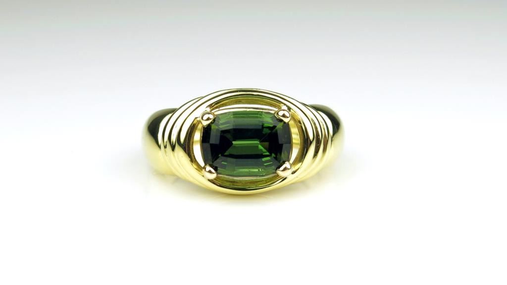 Authentic ‘TIFFANY & Co.’ Green Tourmaline Ring featuring an Extra Fine 2.00 carat cushion cut Green Tourmaline set in an 18 karat yellow gold custom made TIFFANY setting. Retail $4,000-$5,000 Estimates$2,000-$3,000