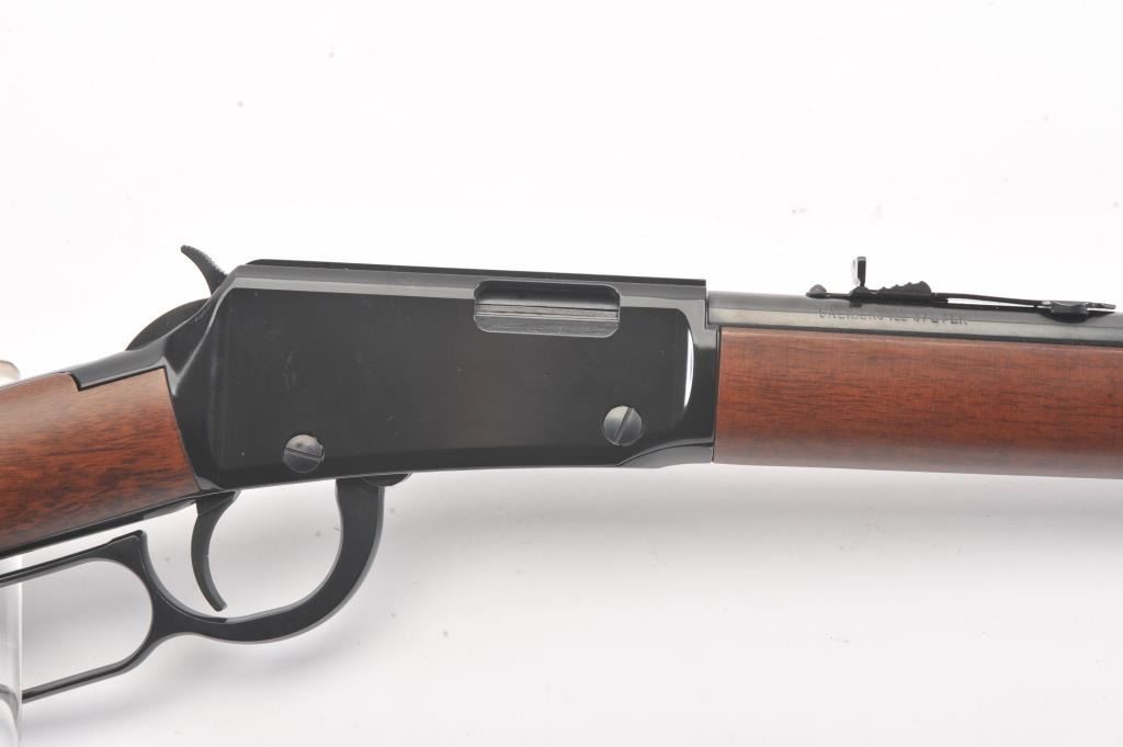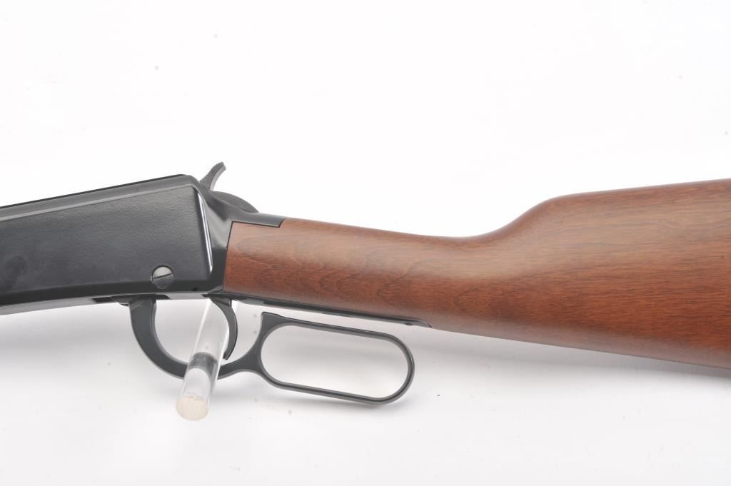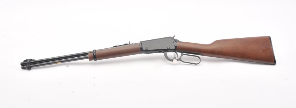 Henry Repeating Arms Co. Model H001 lever action carbine, .22 short, long or LR caliber, 18.5” barrel, blued finish, wood stocks, S/N 851205H; overall near new condition. (Modern). Est.:$150-$300.