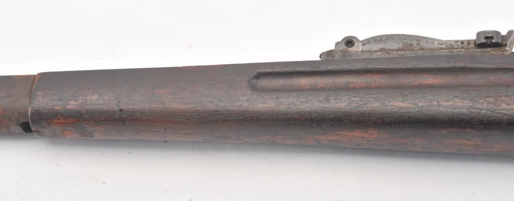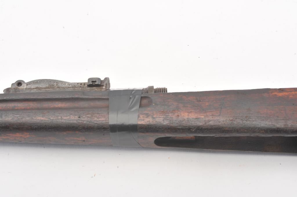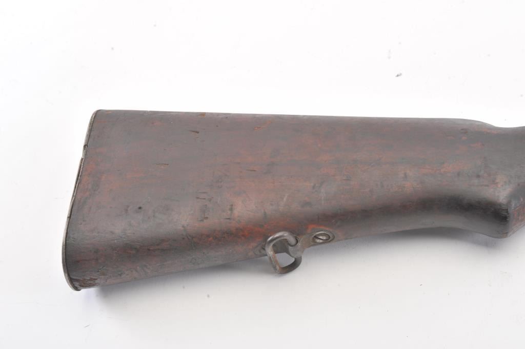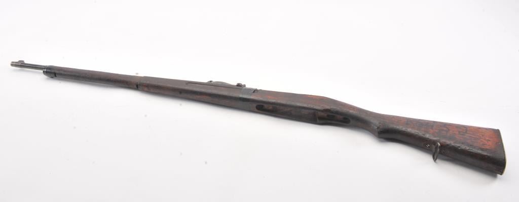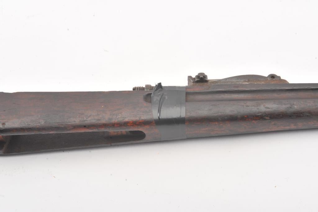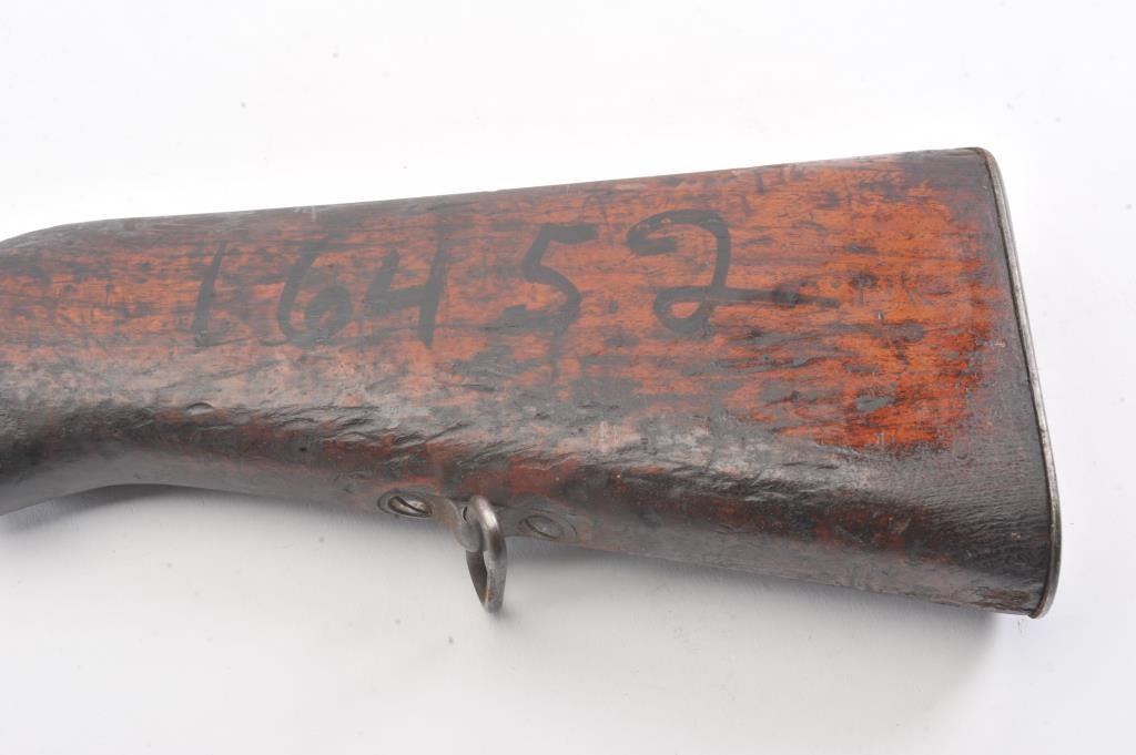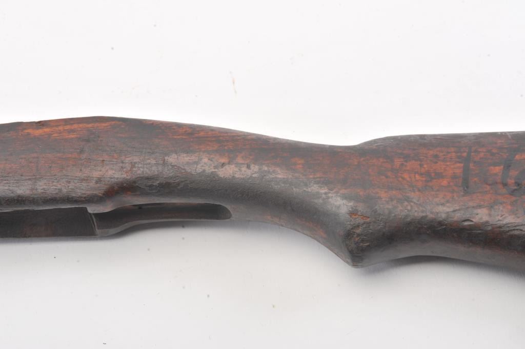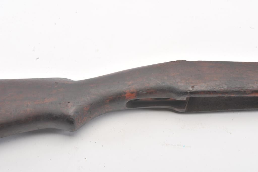 Parts to a Mauser bolt action rifle including barrel, sights and wood stock ONLY; bore is surprisingly good, scattered storage rust spots on exterior of barrel, no barrel bands, stock is in need of a thorough cleaning,rear sight base displays Arabic characters. Est.: $50-$100.