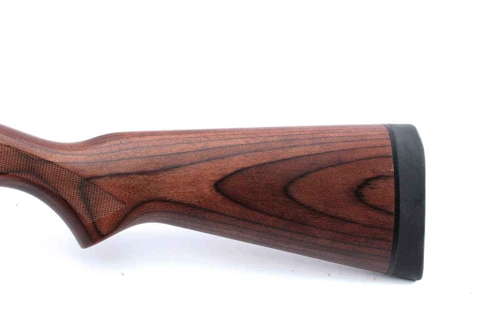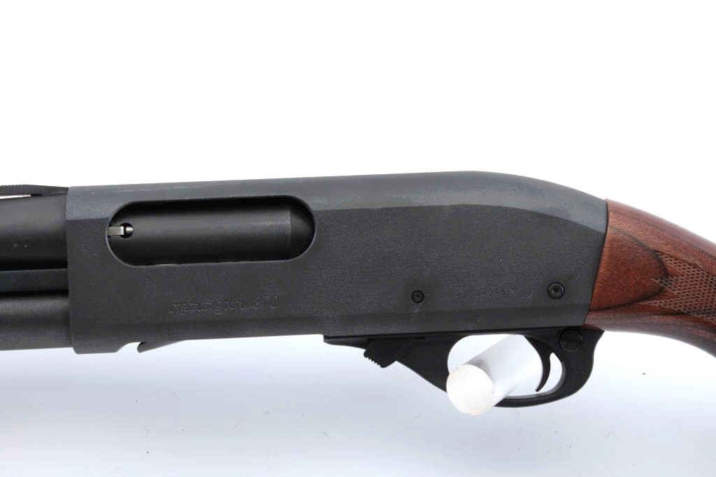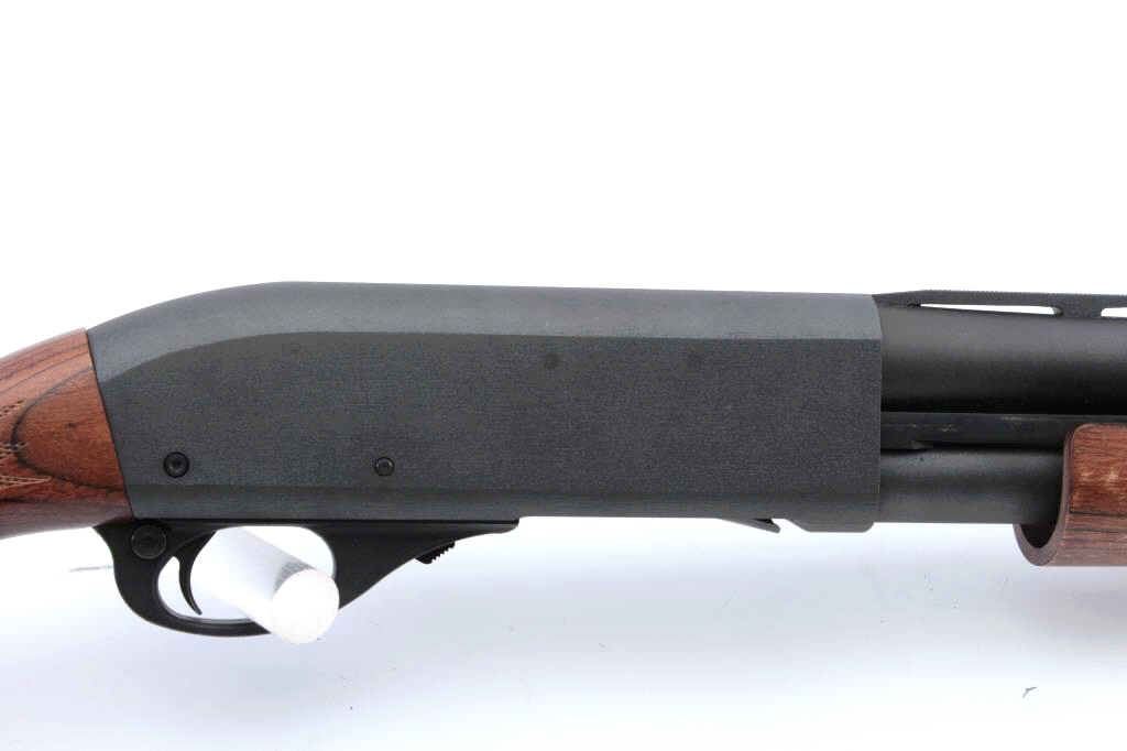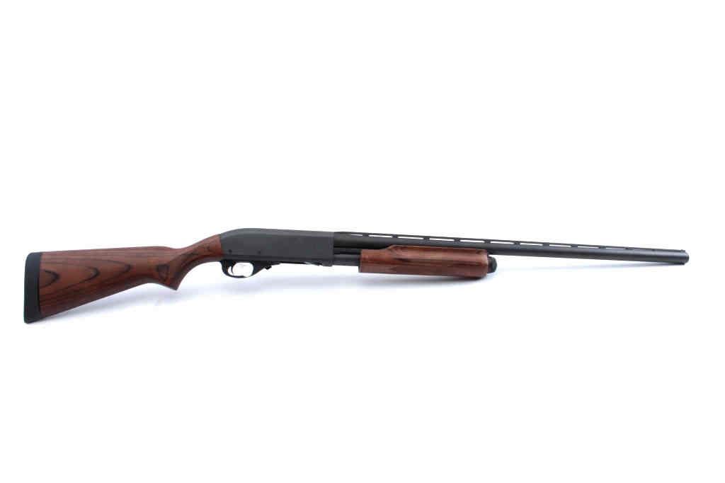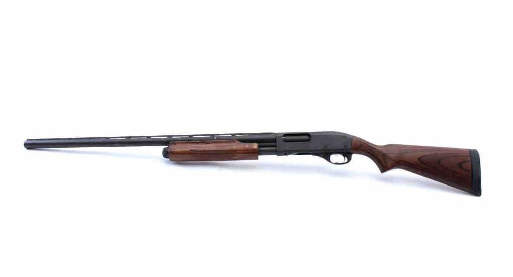 Remington Model 870 pump action left handed shotgun, 12 gauge, 28” ventilated rib barrel, mat black finish, nicely grained wood stocks with hard rubber butt pad, S/N AB804346M; overall fine condition with a fine bore,crisp action, sharp markings, majority of finish remaining and fine wood with slight wear spots to left side of forend. (Modern). Est.: $175-$350.