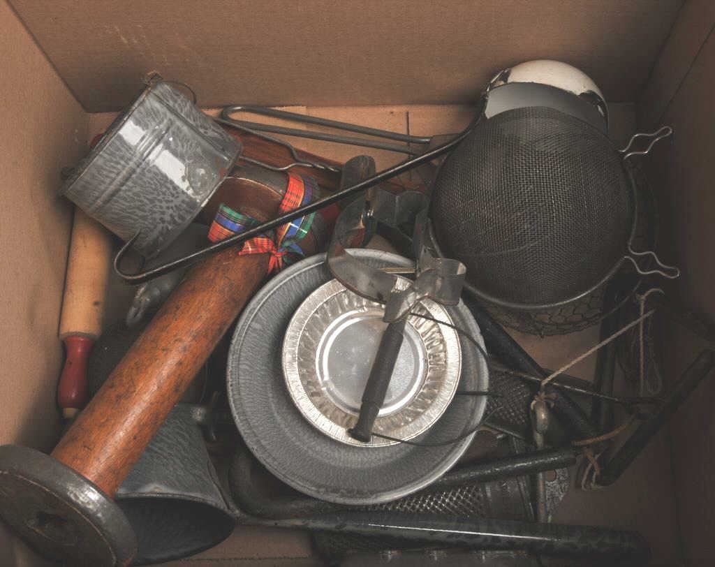 Antique lot of kitchen smalls. Est:$200-400