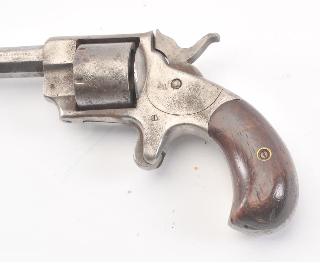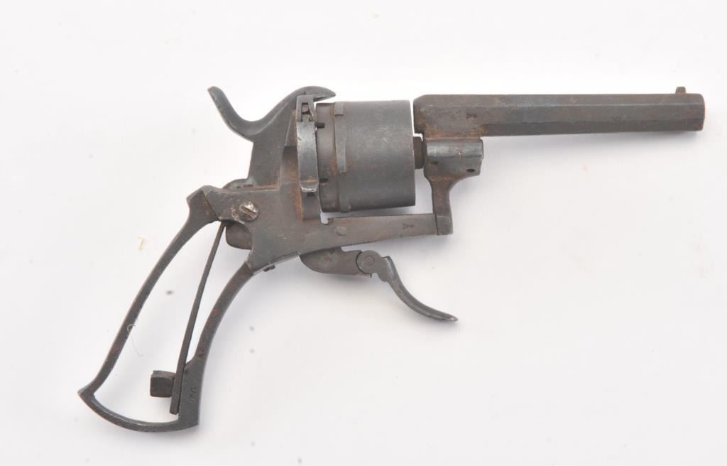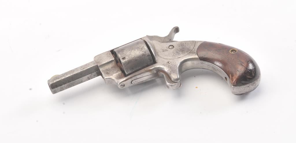 Lot of four non-operational antique pistols, sold for parts. The lot includes a Red Jacket, Hopkins & Allen Ranger No. 2, Terror and unmarked pin fire revolvers. All four are inoperable and sold as parts only. Est.: $150-$300. (Antique).
