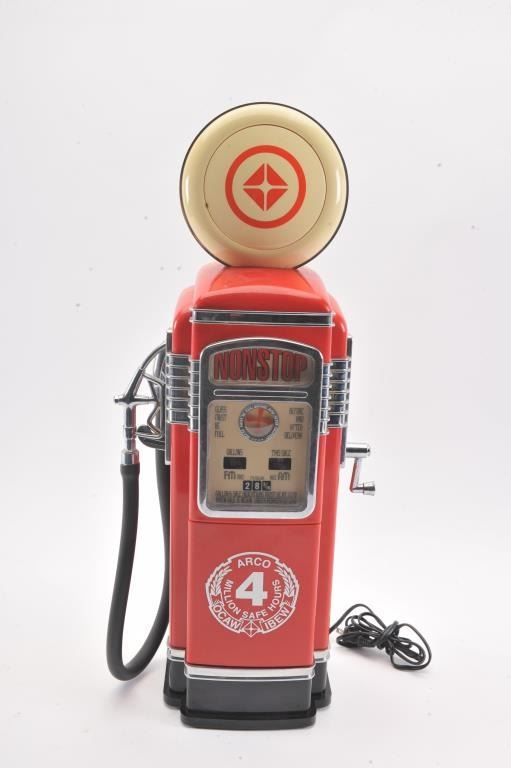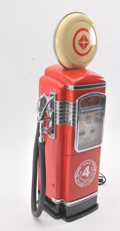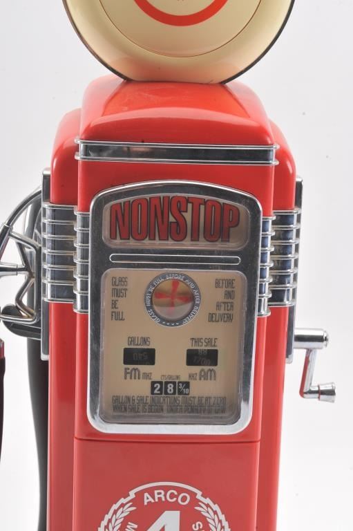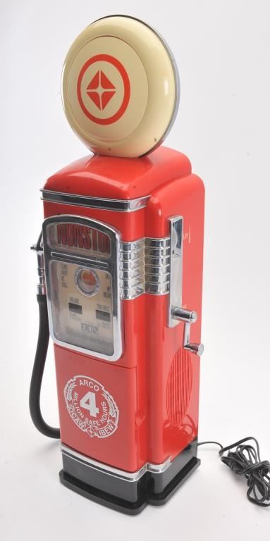 Misc. lot consisting of a coin operated Bubble Gum Machine, gas pump radio and an old style radio. Est:$125-250