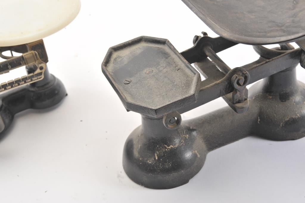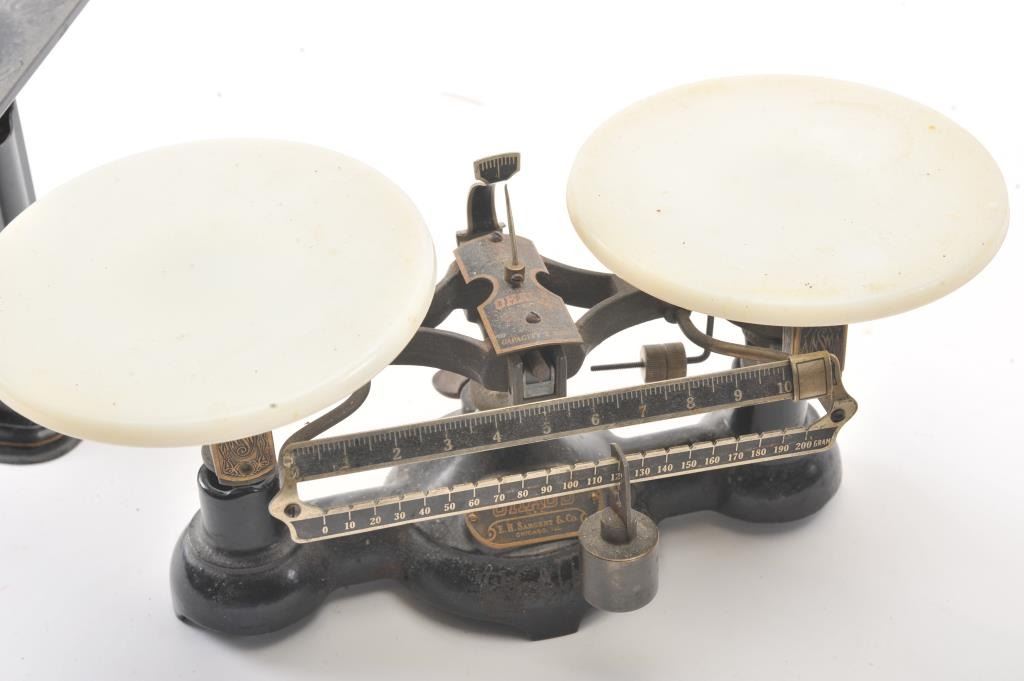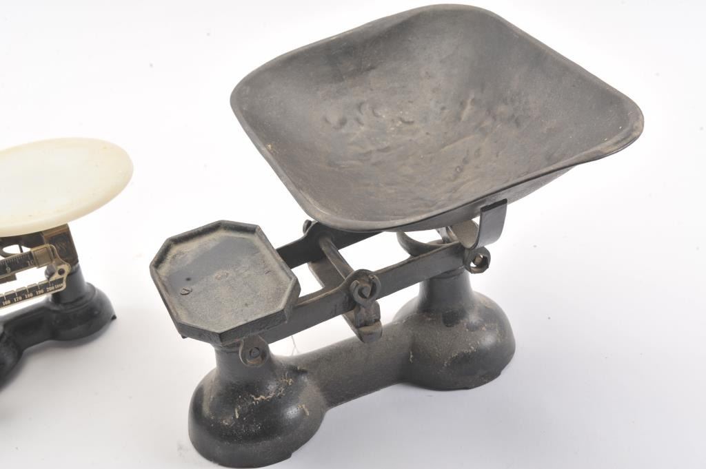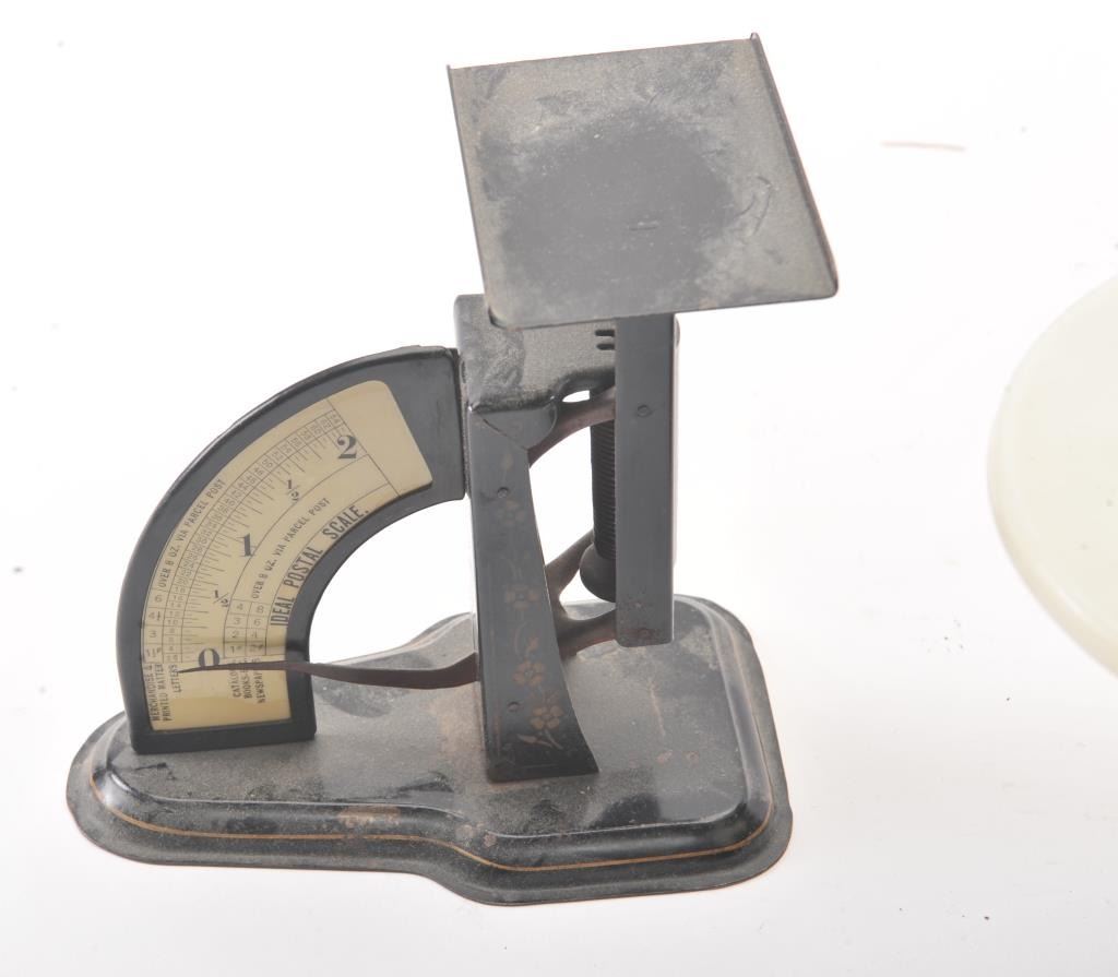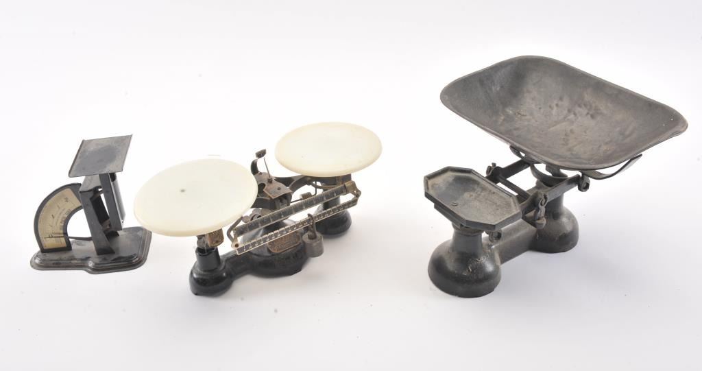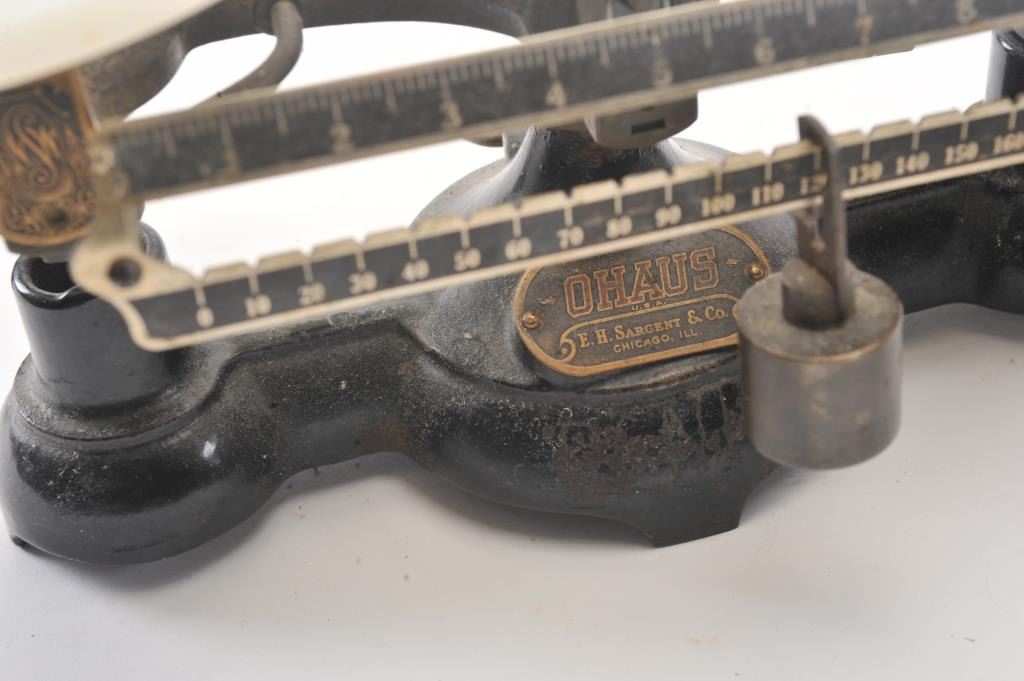 Lot of 3 antique scales, one by Ohaus, one postal scale and 1 with removeable basket. Est;$150-300