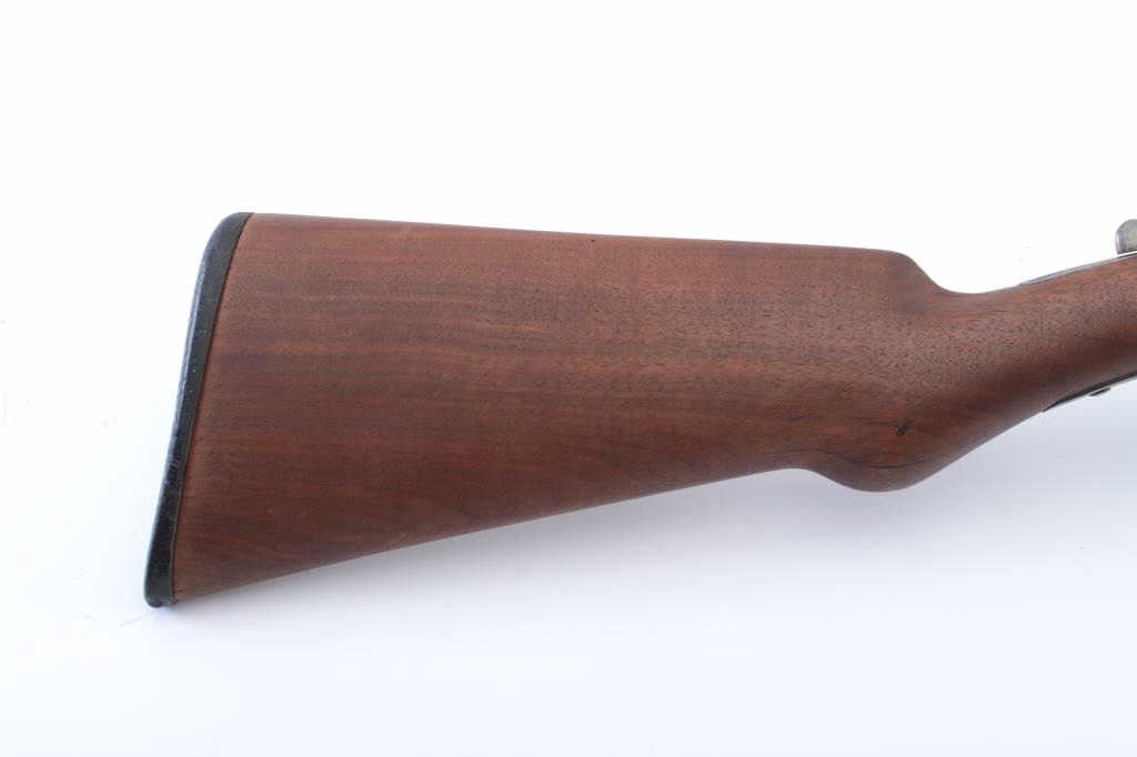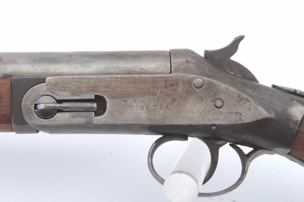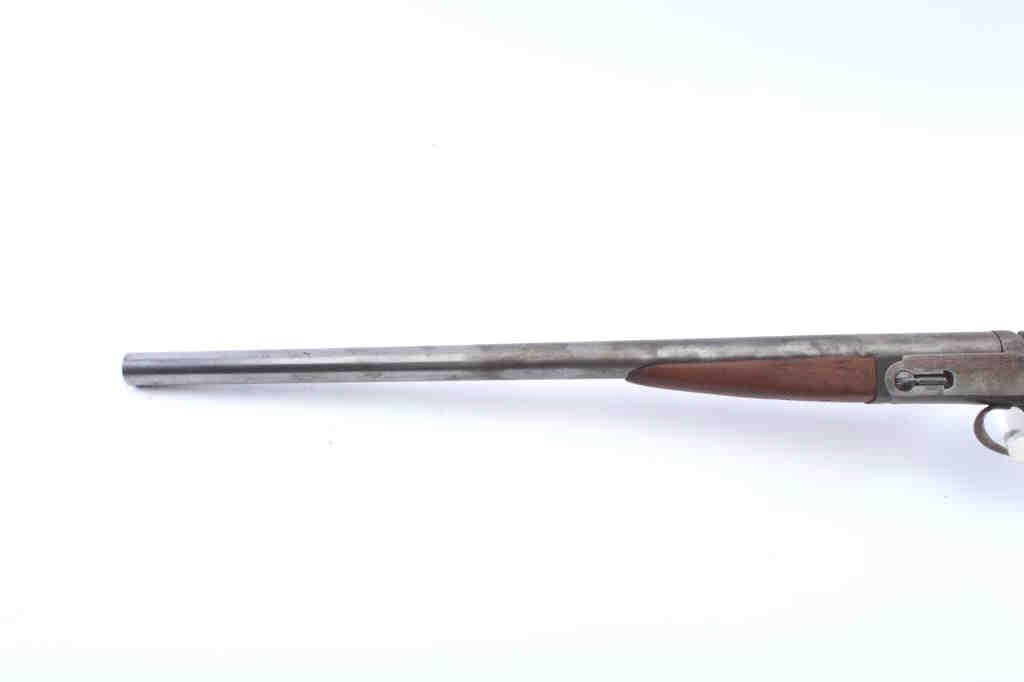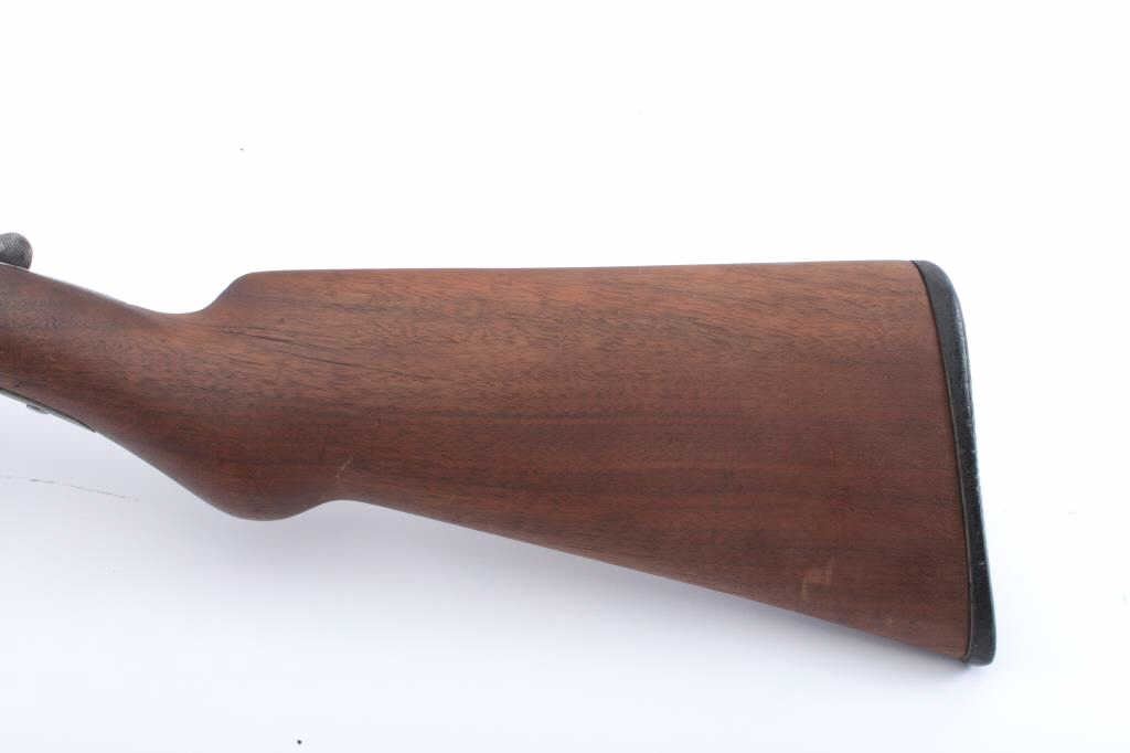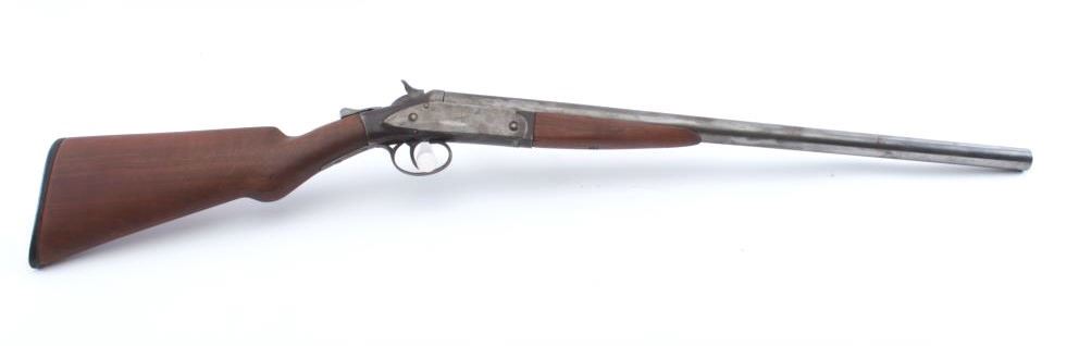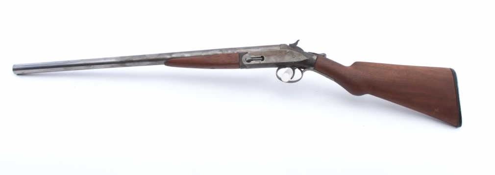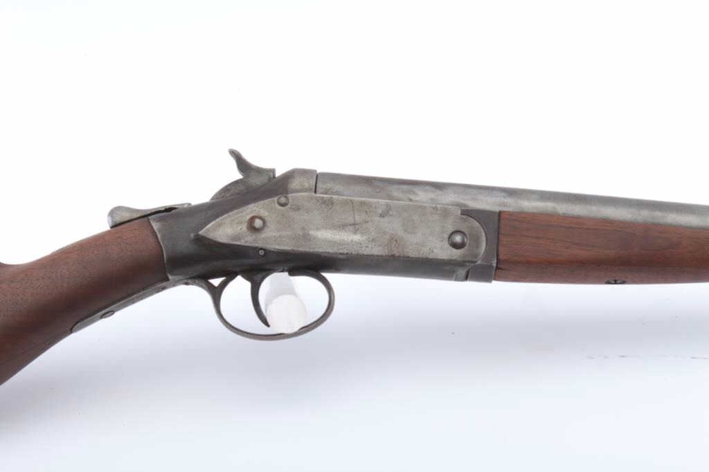Hopkins & Allen single shot shotgun, 12 gauge, Serial #NSNV. The shotgun is in fair overall condition with a 23” barrel. The shotgun has gone to silver patina with light surface rust evident. The smooth wood stockis in good condition, the bore is fair and action functions. Est.: $25-$50. (C+R).