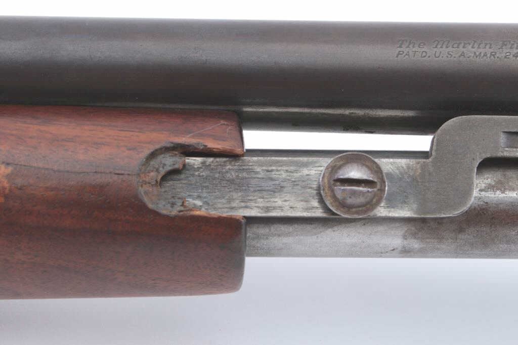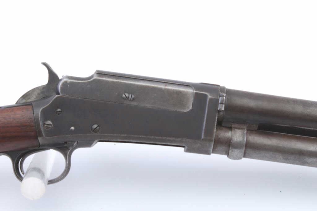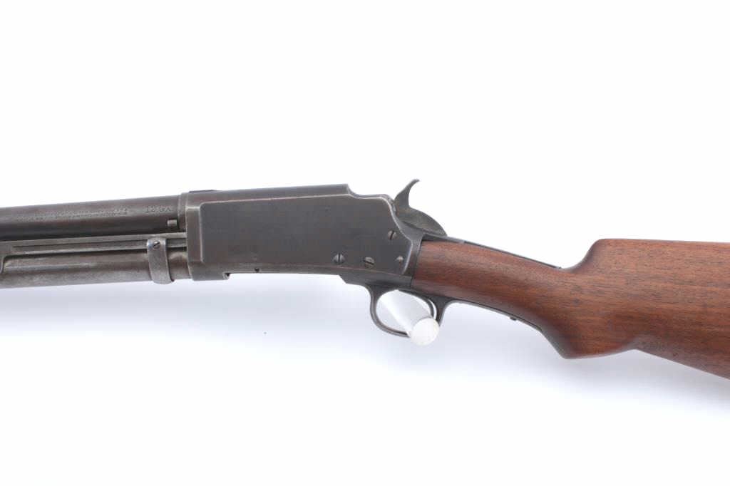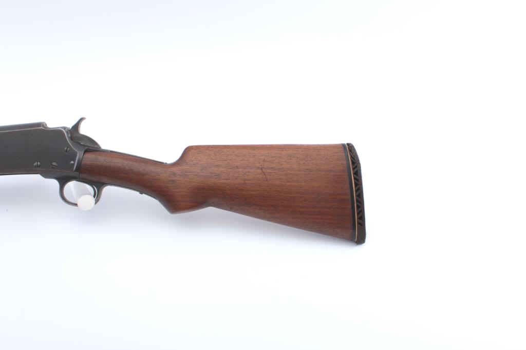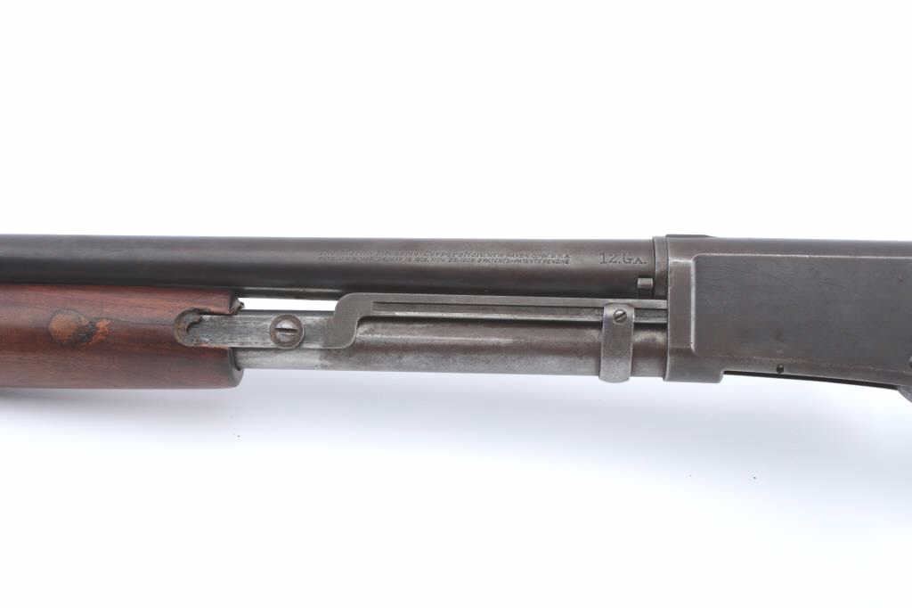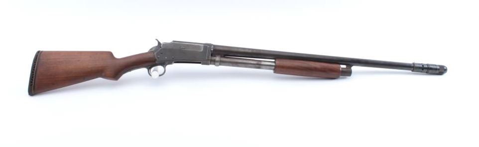 Marlin Model No. 19N pump shotgun, 12 gauge, Serial #8614. The shotgun is inoperable in need of repair with a 27” barrel including the Lyman adjustable choke attachment. The smooth wood stock is in fair condition.Est.: $50-$100. (C+R).