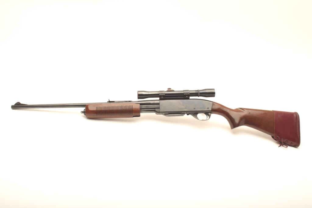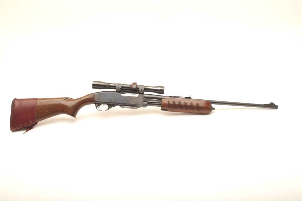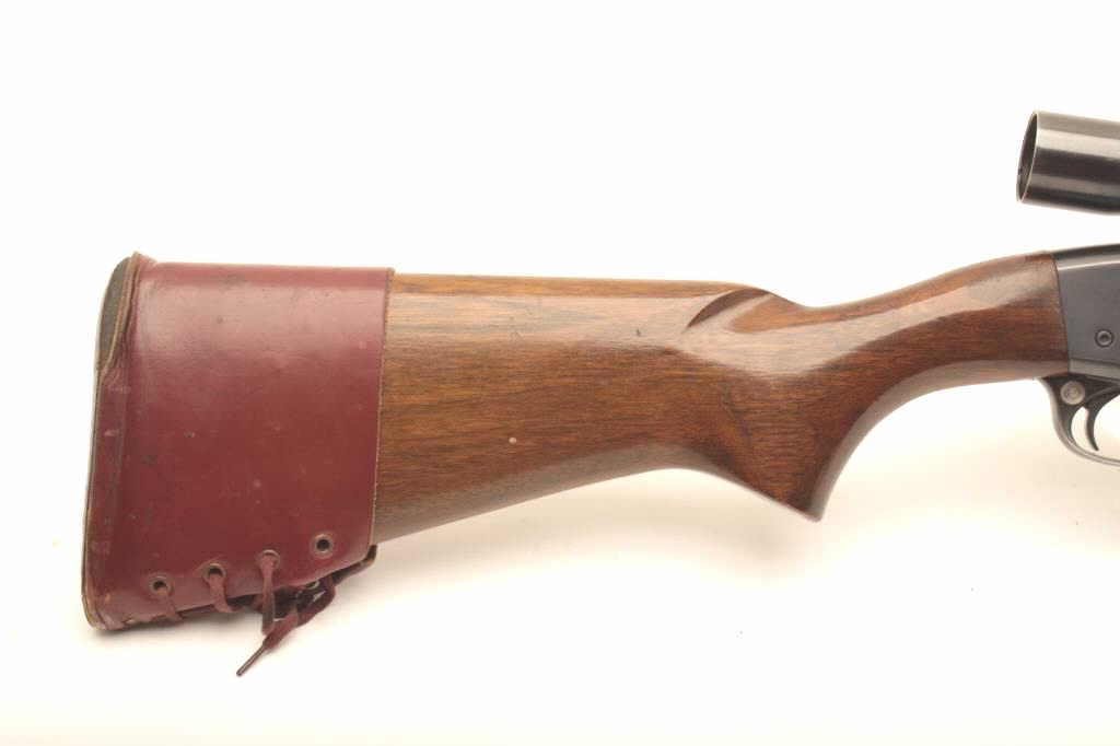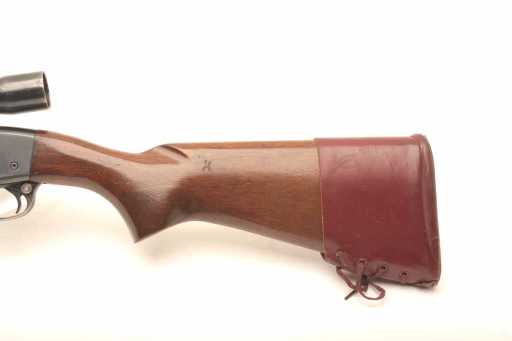 Remington Game Master .30-06 caliber semi-auto rifle mounted with unmarked vintage scope on Weaver mounts. Good to very good used condition, S/N 252505. Leather slip on recoil pad with original Remington butt plate intact. Sling swivel eyelets added. (Modern) Est.: $300-$600
