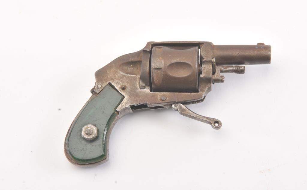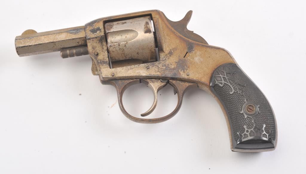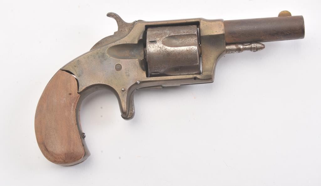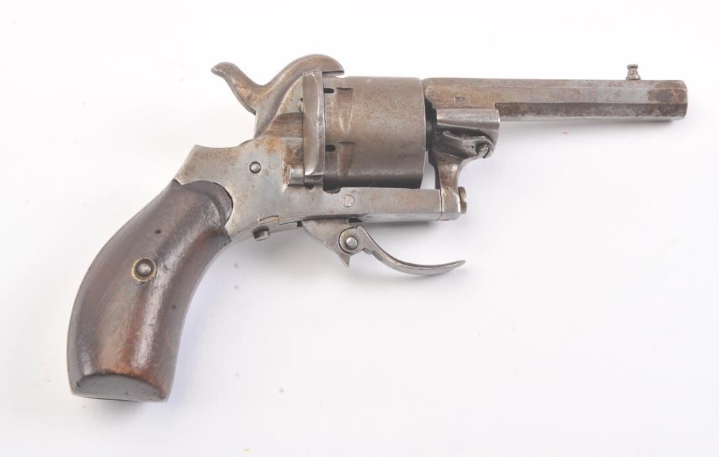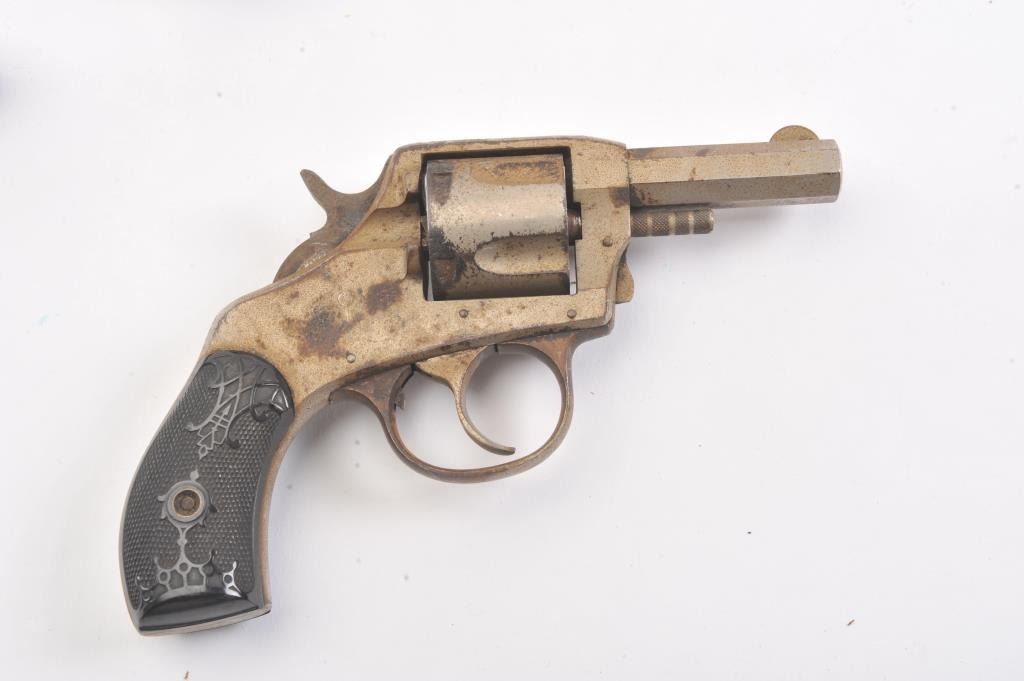 Lot of four antique revolvers including: The American, American No. 3 S, an unmarked revolver with a folding trigger and a pin fire revolver with Belgian proofs on the cylinder. All four are in fair conditionwith light surface rust and erosion. Est.: $150-$300. (Antique).