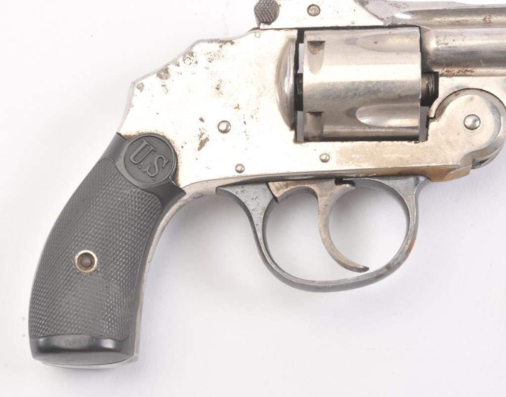 FFL lot of three double action pistols. All three pistols are inoperable and sold as parts only. The lot includes three revolvers by U.S. Revolver Co., Hopkins & Allen and Harrington & Richardson. All three areinoperable and sold as parts only. Est.: $100-$200. (Modern).