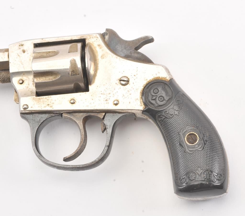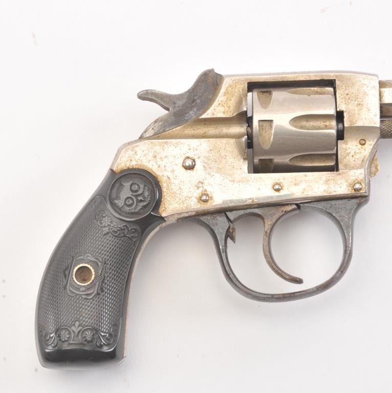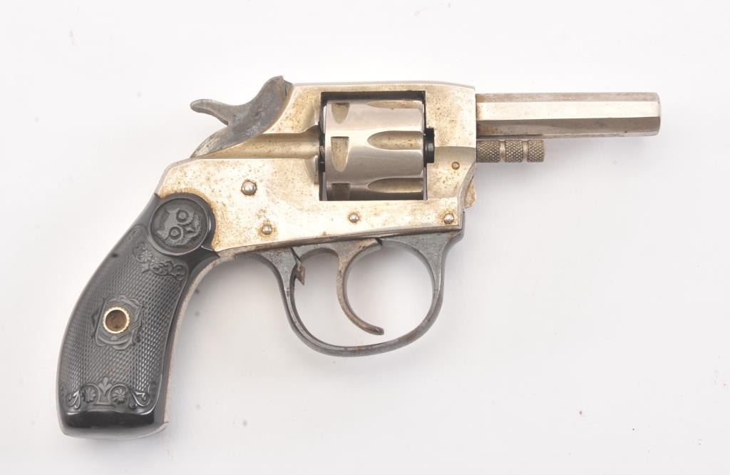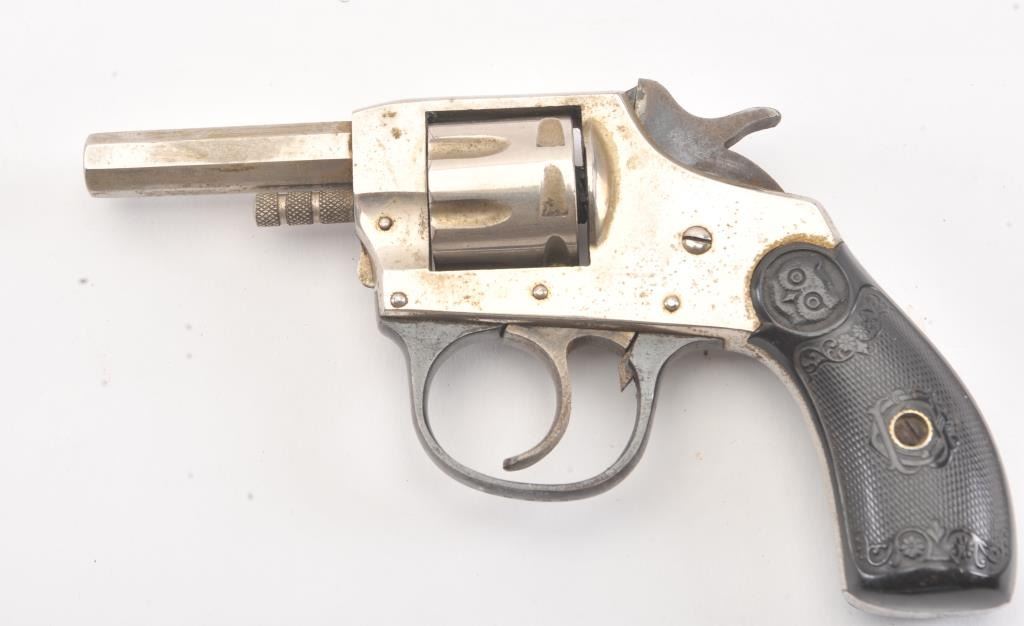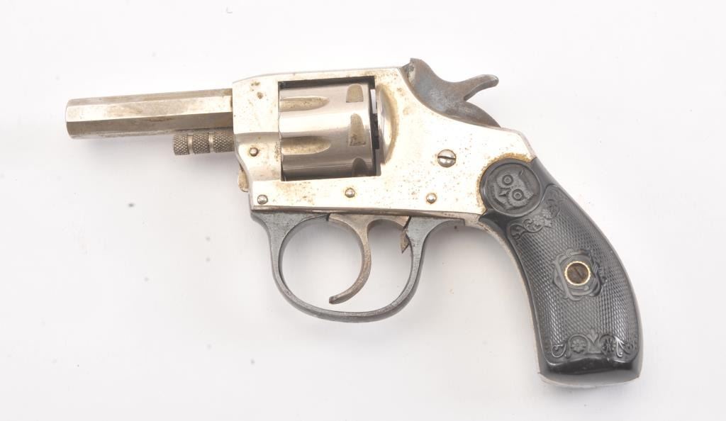 Lot of two Spanish double action revolvers and an Iver Johnson Model 1900. All three pistols are missing parts, inoperable and sold as an FFL only parts lot. The pistols are in fair overall condition retaining aconsiderable amount of muted finish. Three pistols, sold as parts, FFL only. Est.: $100-$200. (Modern).