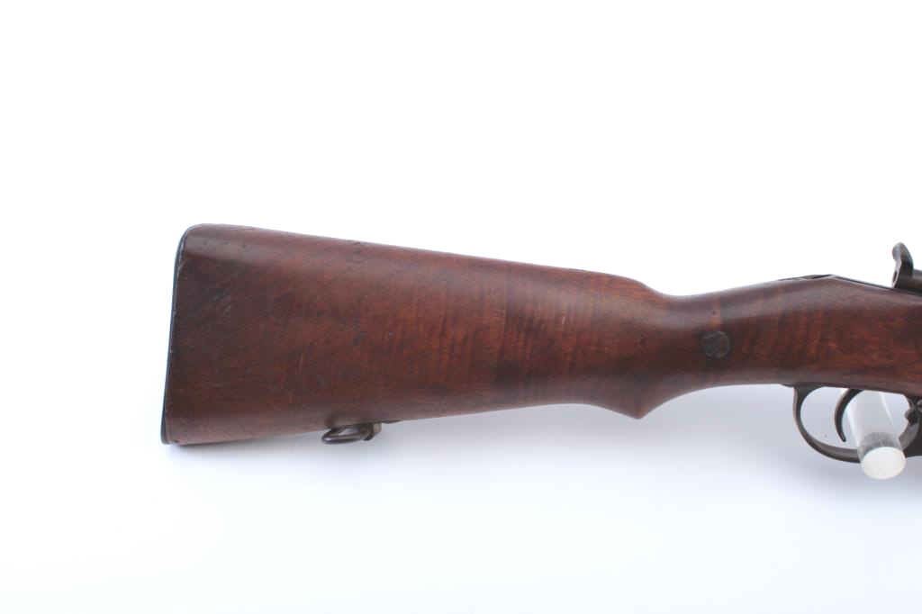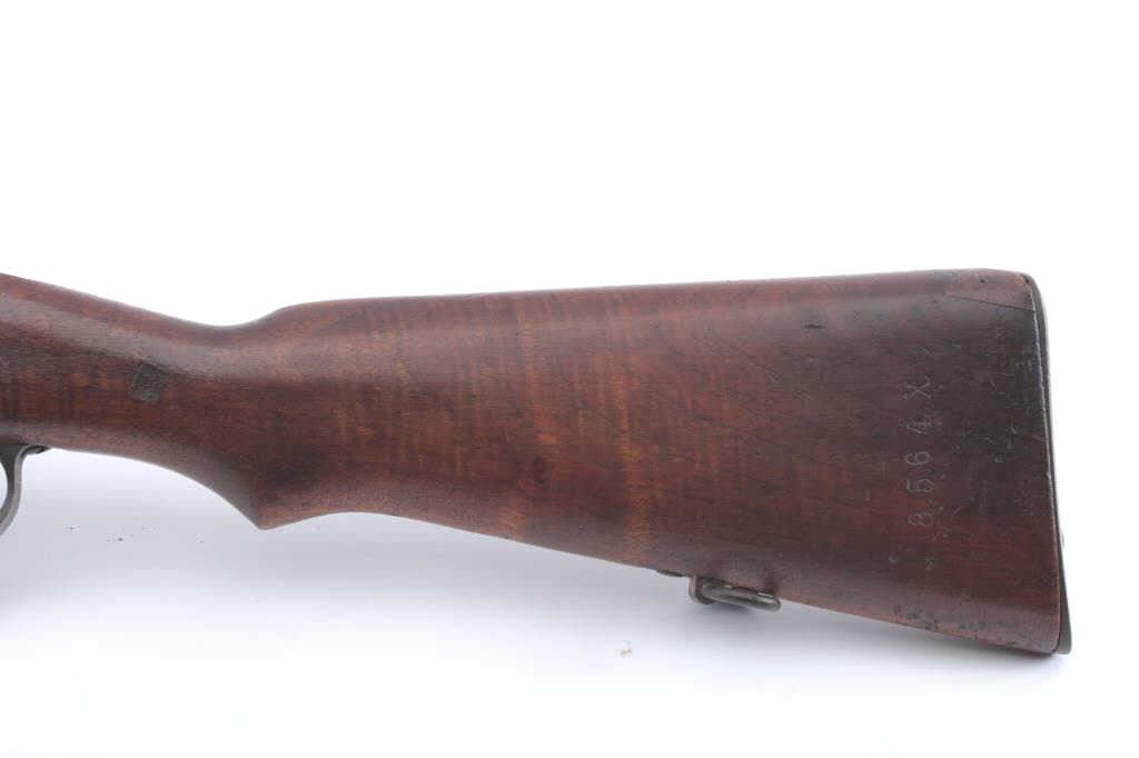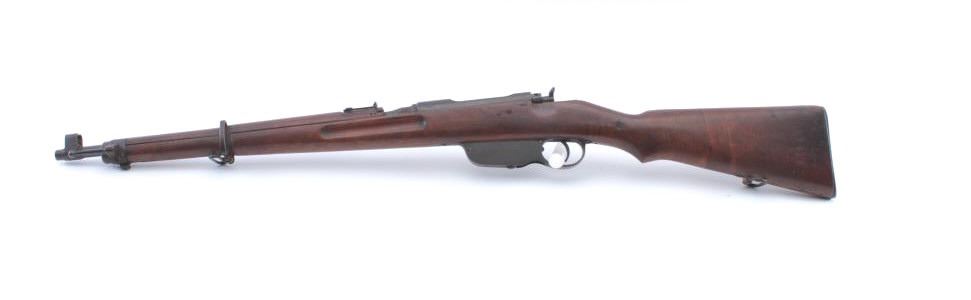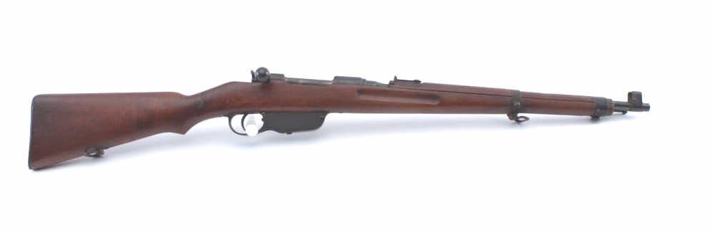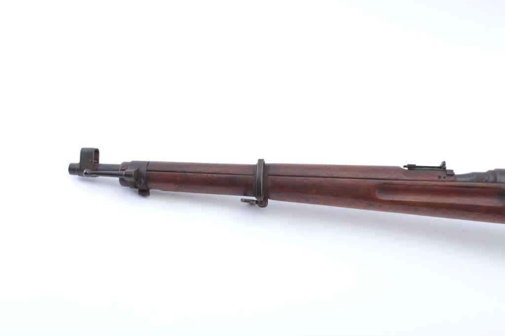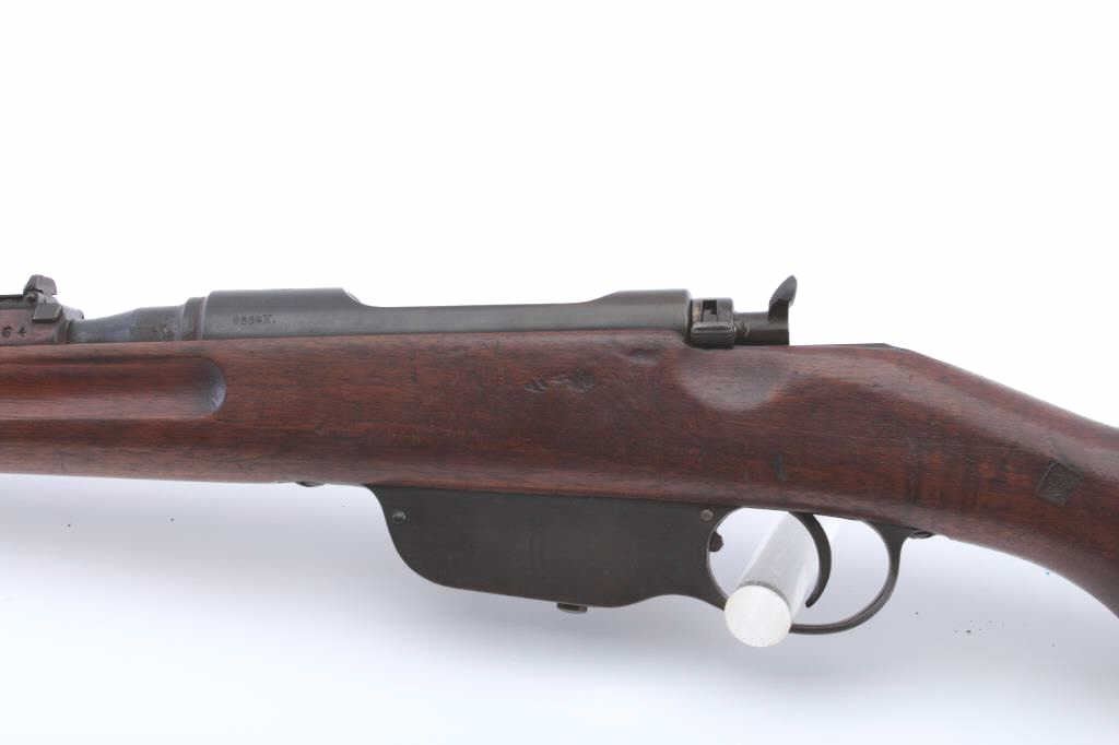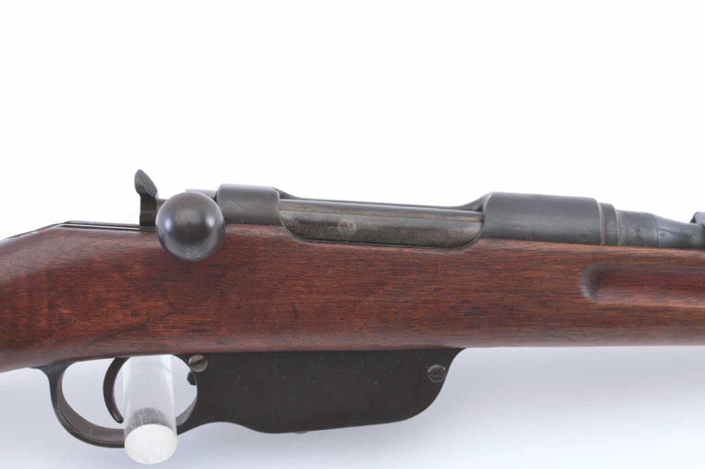 Steyr M95 bolt action rifle, 8mm caliber, Serial #8564X. The rifle is in very good overall condition with a 20” barrel with a protected blade front and military ladder style rear sights. The metal surfaces havegone to a brown patina with sharp markings. The smooth wood stock is in good condition with mars and compressions consistent with service use. The butt stock is serialized to the action. The bore is fair, the actionfunctions and the markings are sharp. Est.: $175-$350. (C+R).
