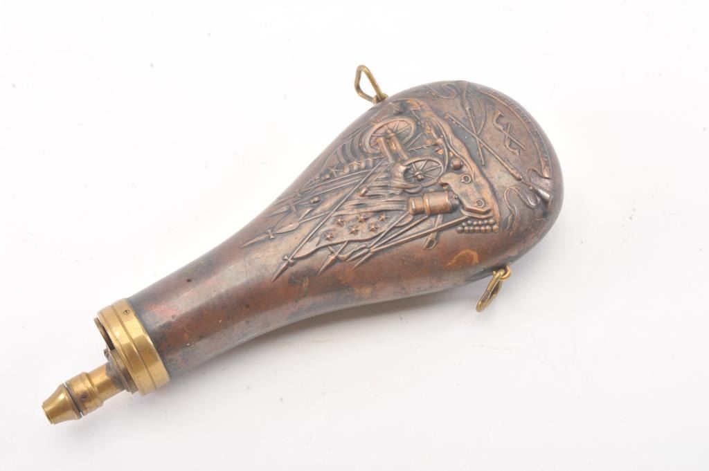 A fine quality Colt’s patent Dragoon powder flask in excellent condition. Not period but much finer quality than modern reproductions. Est.: $75-$150